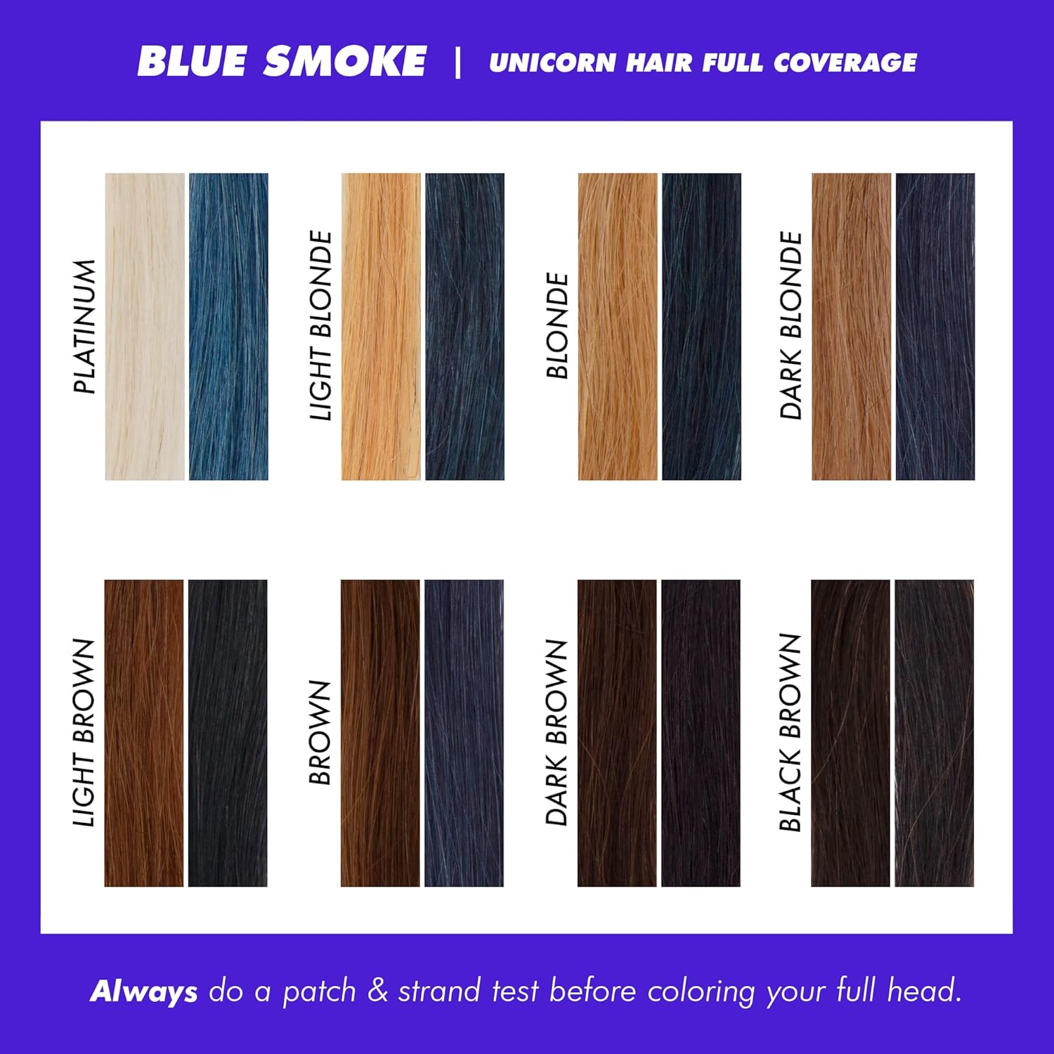 - Blue Smoke Unicorn Hair Dye: Dyed and gone to Unicorn Heaven! Lime Crime Unicorn Hair is a DIY-friendly, semi-permanent color dye that transforms hair into vibrant colors... all from the comfort of your own home. Blue Smoke is a steel blue color that will make your fantasy hair color dreams come true, and its sugary citrus vanilla scent will make your transformation even sweeter!