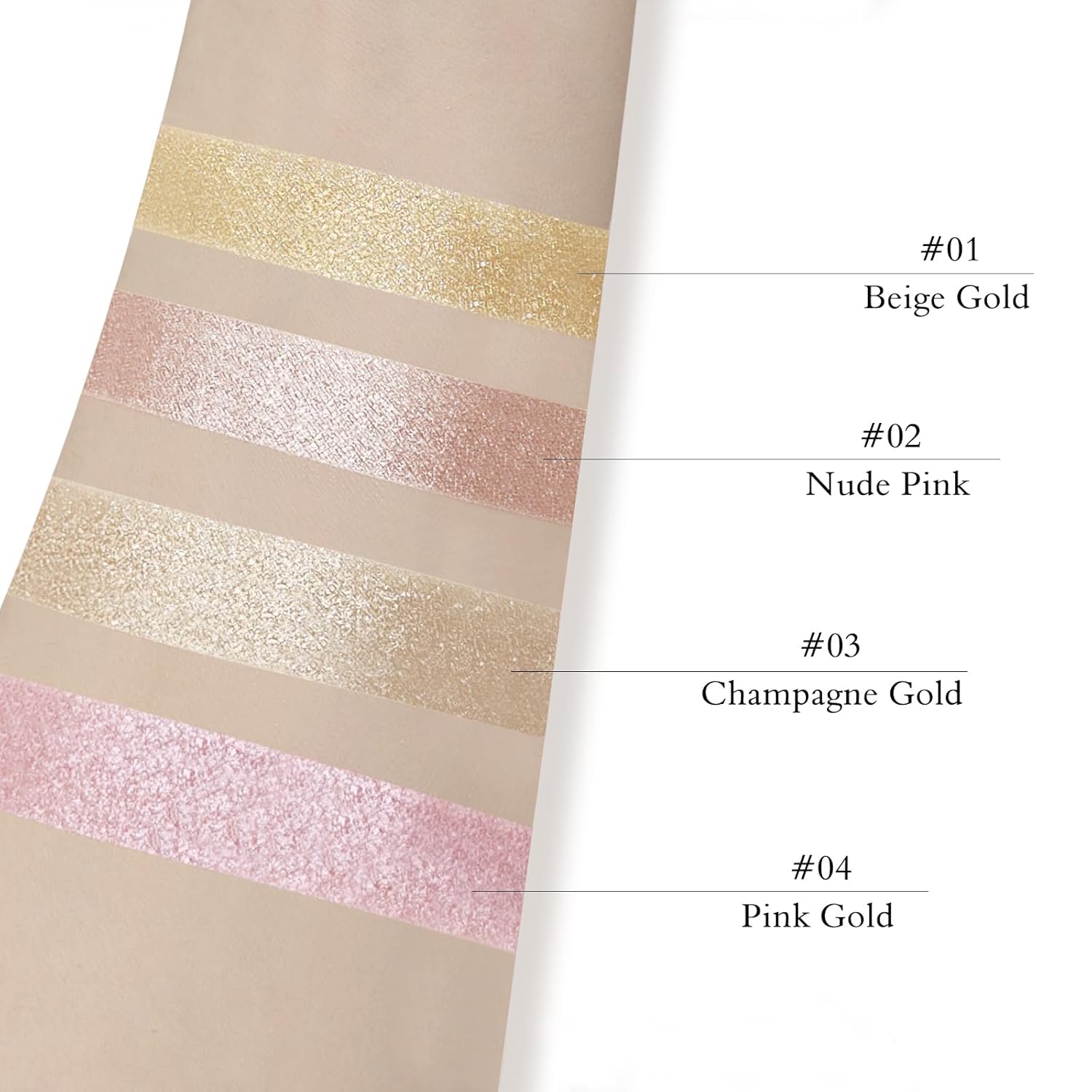 Highlighter Makeup Palette Shimmer Contour Palette Powder for Brighten Face Contour Gold Cheek Highlight Makeup,Long Lasting Highlighter Powder with Mirror for Illuminator Makeup(CHAMPAGNE GOLD)