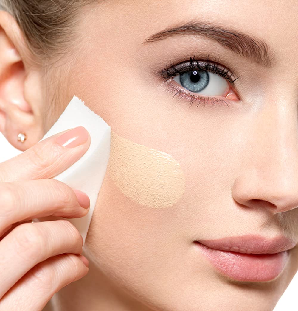- Large, smooth surfaces of wedge provide even coverage when applying foundation to cheeks and forehead
