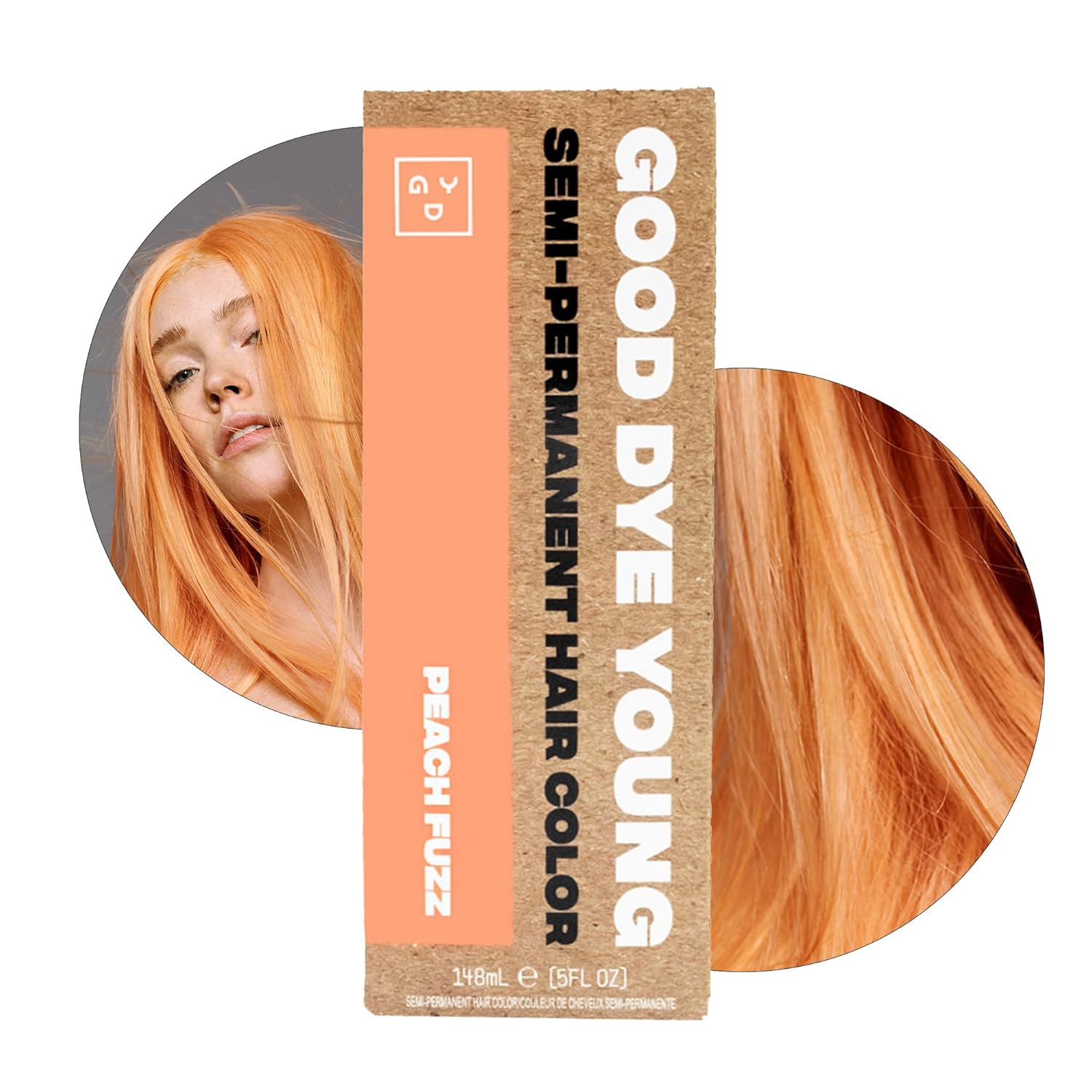 Good Dye Young Semi-Permanent Hair Color, Vegan and Cruelty-Free Peach Orange Hair Dye, Last up to 24 Washes, Non-Damaging Conditioning Hair Color (5FL OZ, Peach Fuzz)