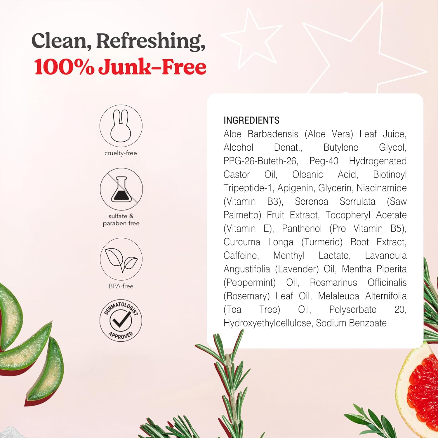 - MAGIC OF NIACINAMIDE & ALOE VERA: Niacinamide plays a vital role in long and strong hair by helping stimulate blood circulation and promote faster absorption of nutrients. It can bring back the natural texture of hair by building Keratin and enhances the appearance of the scalp by reducing flaking. Aloe Vera conditions and can improve dry and damaged hair.