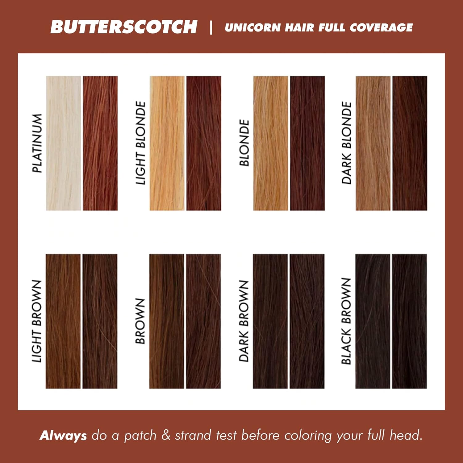 - Butterscotch Unicorn Hair Dye: Dyed and gone to Unicorn Heaven! Lime Crime Unicorn Hair is a DIY-friendly, semi-permanent color dye that transforms hair into vibrant colors... all from the comfort of your own home. Butterscotch is a gorgeous brown-red ginger that will make your fantasy hair color dreams come true, and its sugary citrus vanilla scent will make your transformation even sweeter!