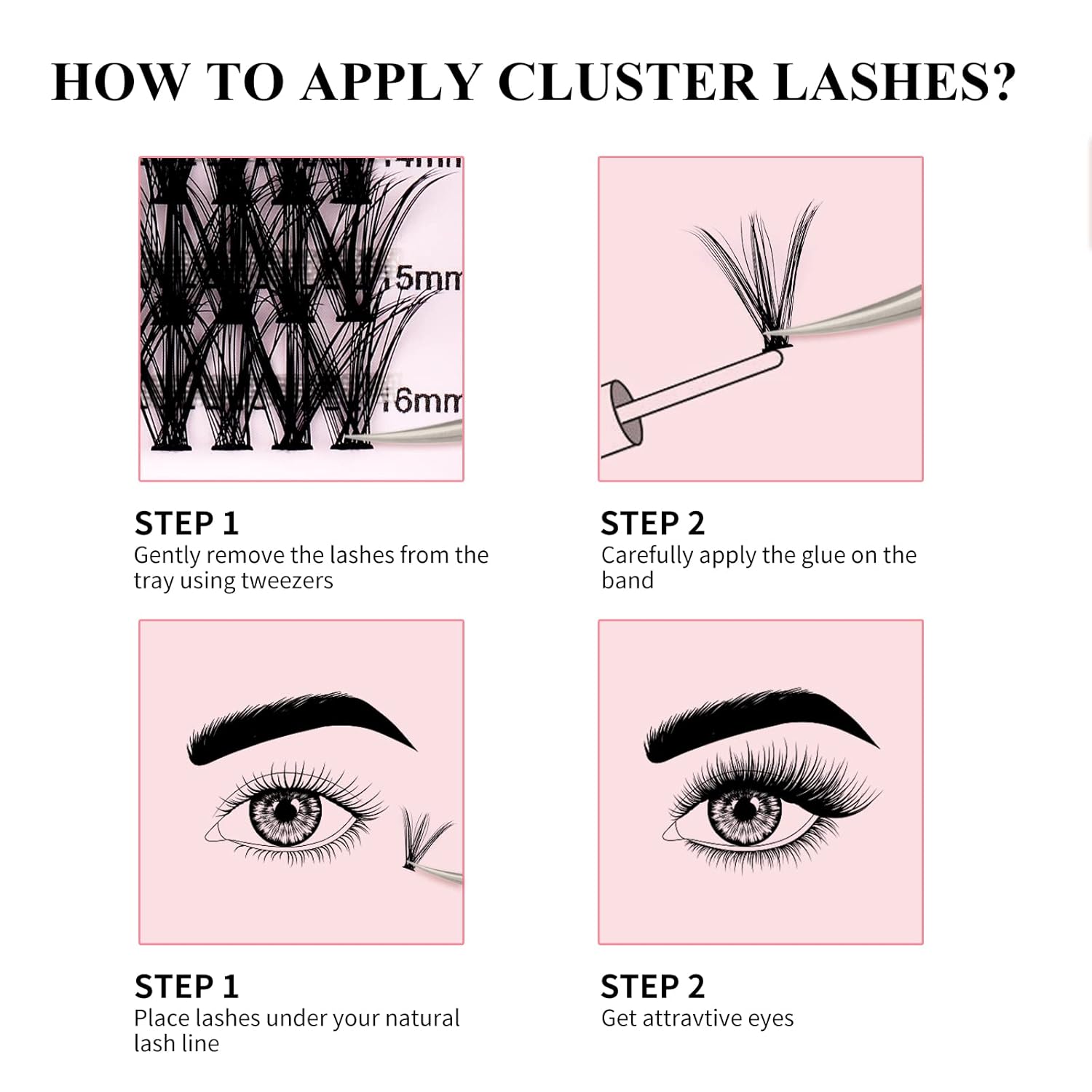- New Lash Clusters: The lash clusters are made of high quality material. We have different styles you can create a glam cat eye effect or blend it with other styles for a natural daily look.