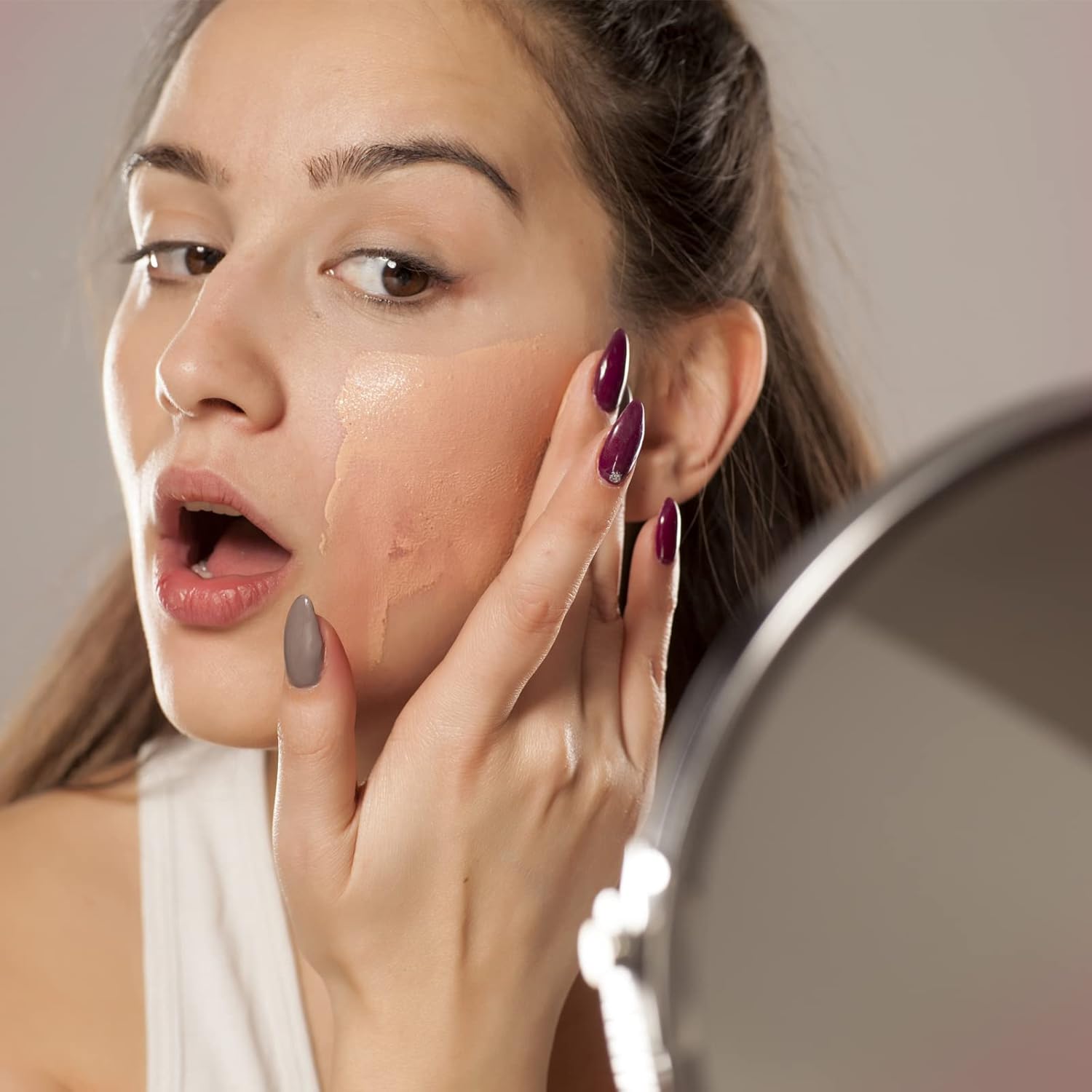 - Concealer: This full-coverage foundation reduces the appearance of acne, redness, dark circles and large pores, smoothes skin tone, minimizes and blurs pores and reduces redness.
