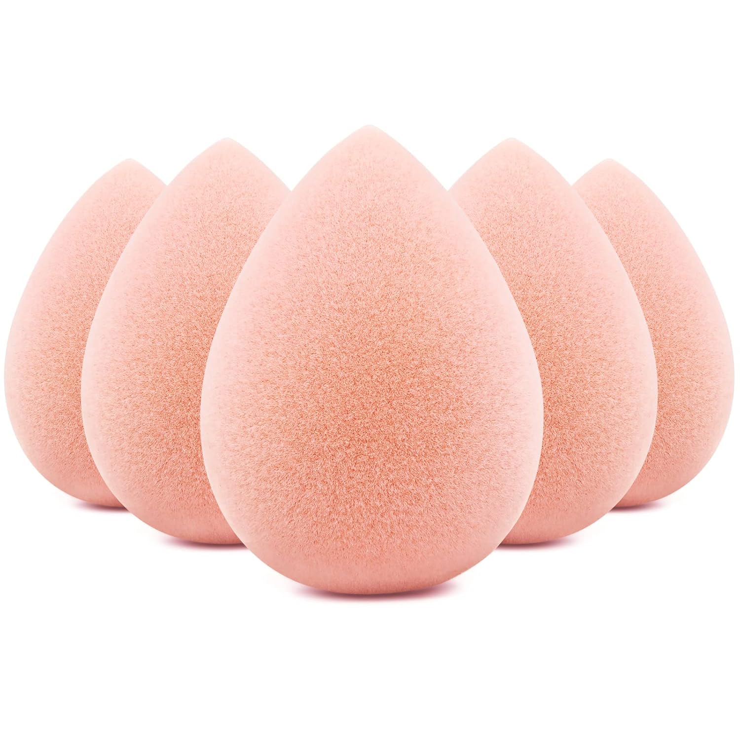 BEAKEY Makeup Sponge Set, Foundation Blending Sponge, Beauty Sponges Flawless for Liquid, Cream, and Powder, Microfiber Latex-Free and Vegan Boun Boun Sponges, 5 Pcs Pink Makeup Sponges