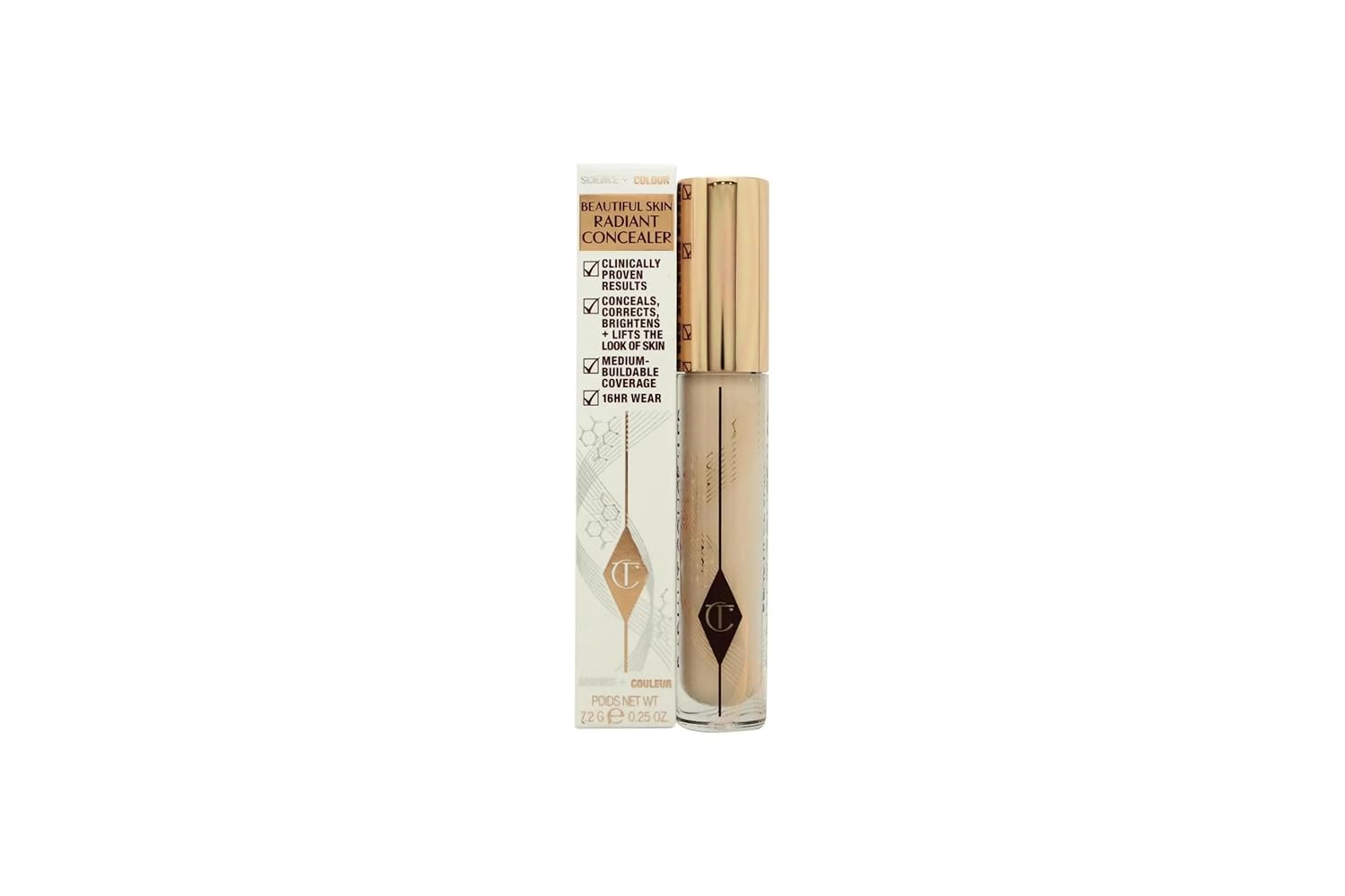 Charlotte Tilbury Beautiful Skin Medium to Full Coverage Radiant Concealer with Hyaluronic Acid - 4.5 Fair with Pink/Peach Undertones