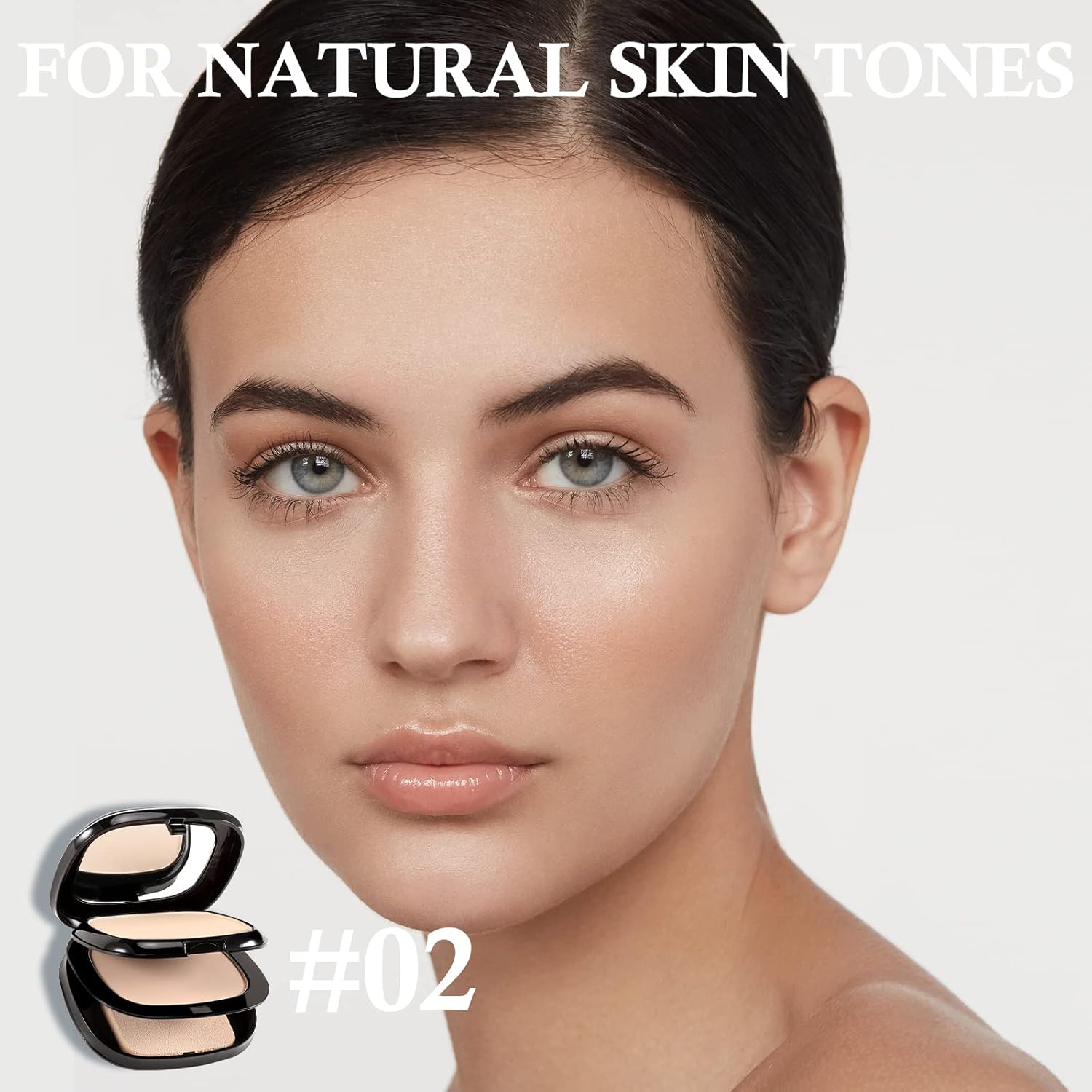 Boobeen Pressed Powder, Light Shade, Long-Lasting Matte Finish, Flawless Lightweight Makeup, 2 Layers Setting Powder Foundation, Compact with Mirror and Puff