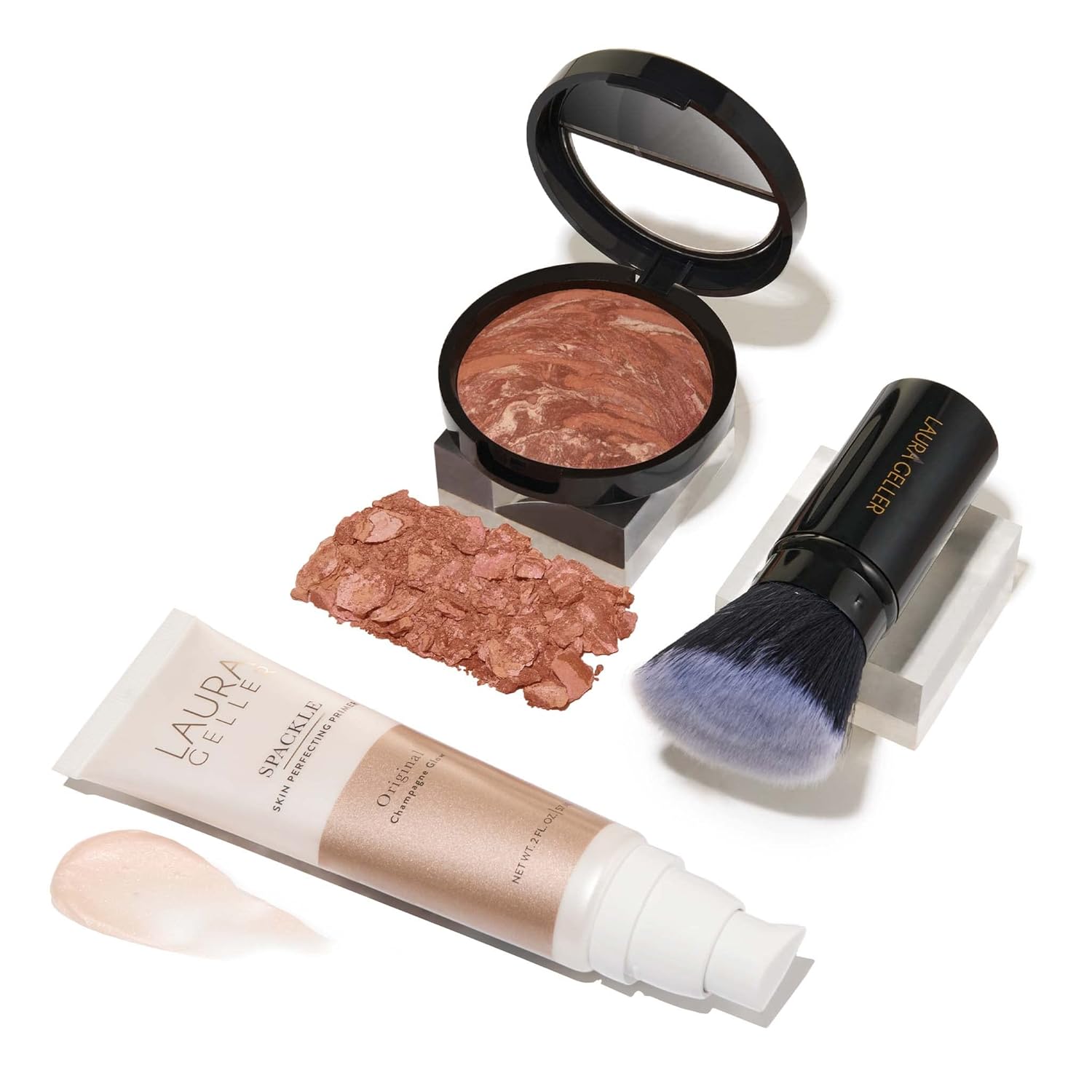 LAURA GELLER NEW YORK Ready-n-Radiant Kit (3 PC) - Baked Bronze-n-Brighten, Deep + Spackle Super-Size Skin Perfecting Primer, Champagne Glow + Retractable Angled Kabuki Brush
