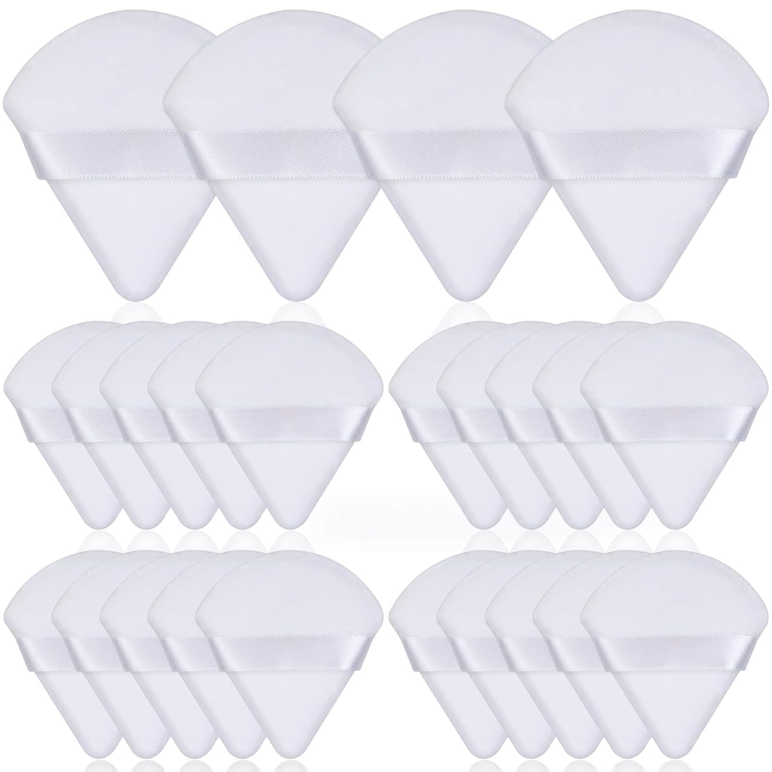 Thrilez 20pcs Triangle Powder Puff, Loose Powder Puffs Makeup Puff for Face Powder, Setting Powder Puff for Make Up, Face Puff Pads for Press Powder, Sponge Powder Applicator for Face and Eye (White)