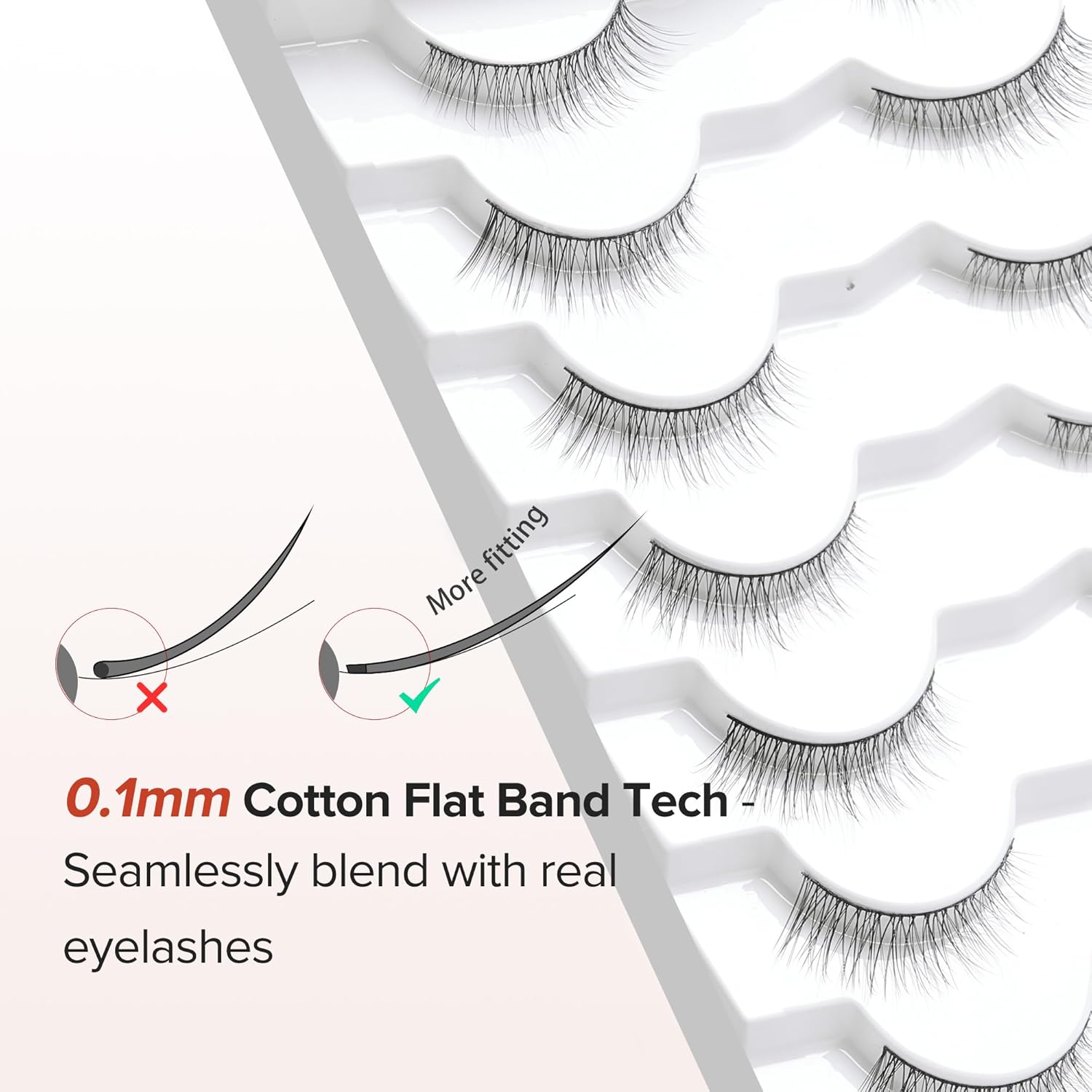 - THIN BAND FALSE EYELASHES: The wispy eyelashes use 0.1mm thin cotton flat band tech, seamlessly blend to your real eye lashes for a natural make up look, suit for DAY-TO-DAY use