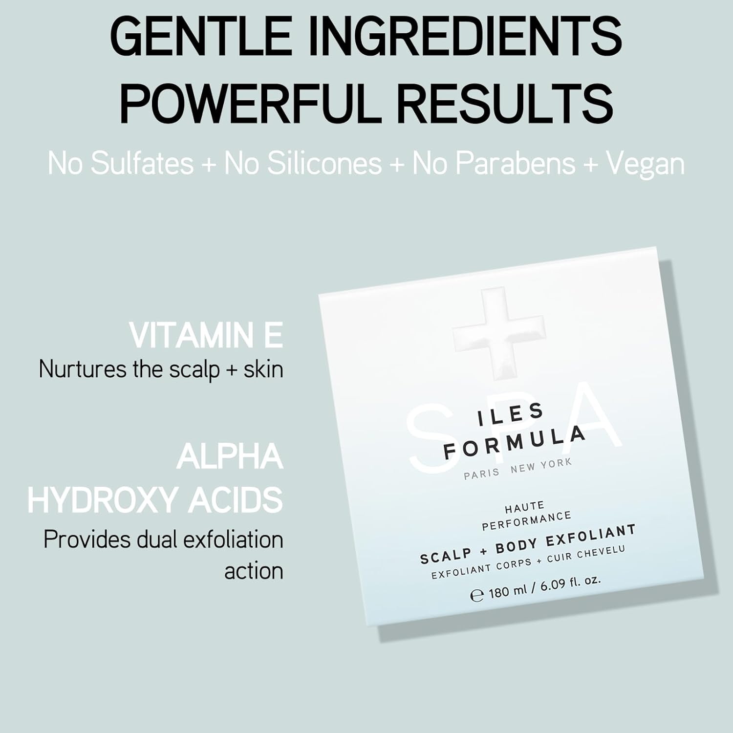 - Deep Exfoliation: The secret of the ILES FORMULA Scalp + Body Exfoliant is the dual exfoliation action from the microparticles , derived from rice husks (no salt, no sugar) combined with AHAβs from the kiwi fruit, that unclog pores, remove dead skin cells, and eliminate impurities, leaving you with a revitalized scalp and radiant skin.
