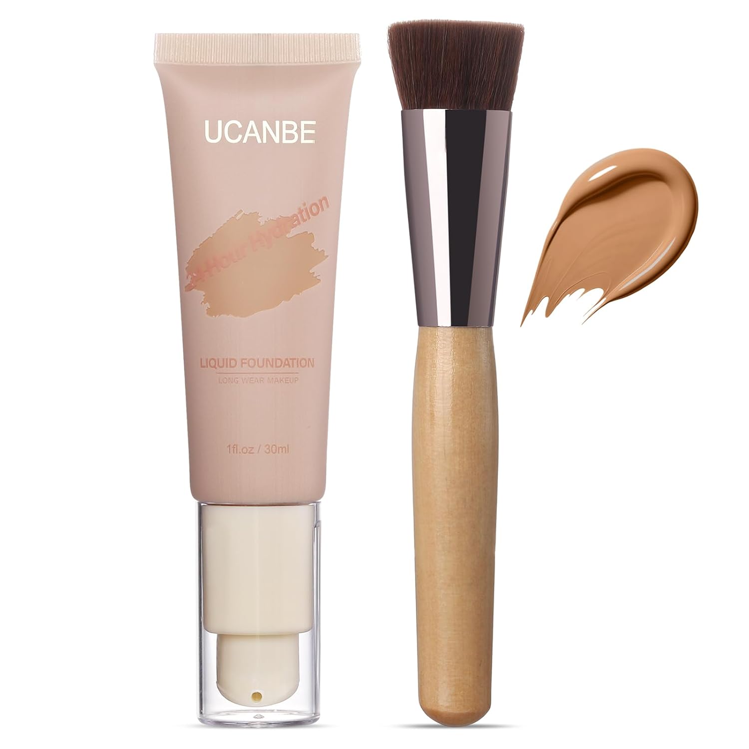 UCANBE Matte Liquid Foundation with Brush, Skincare Serum Foundation Face Makeup with Hyaluronic Acid, Medium to Full Coverage Waterproof Oil Control Longwear, for Mature Skin, Cashew, 1 fl. oz.
