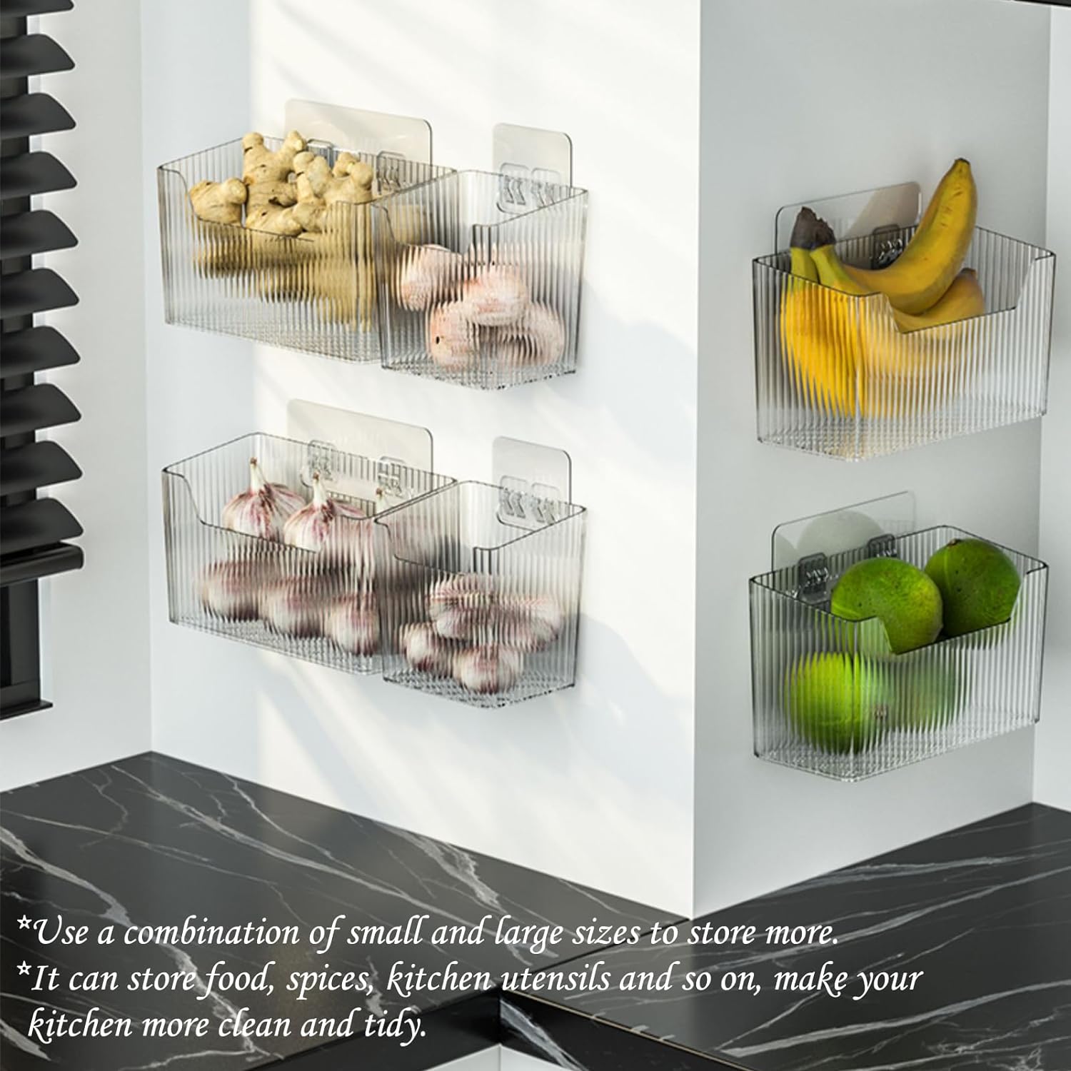 Set Of 2 Storage Organizer Bins Wall Mounted Shower Basket, Shower Caddy Stackable Clear Plastic Makeup Organizer Adhesive Hanging Bin for Bathroom, Kitchen, Cabinet, Pantry, BPA Free, Clear