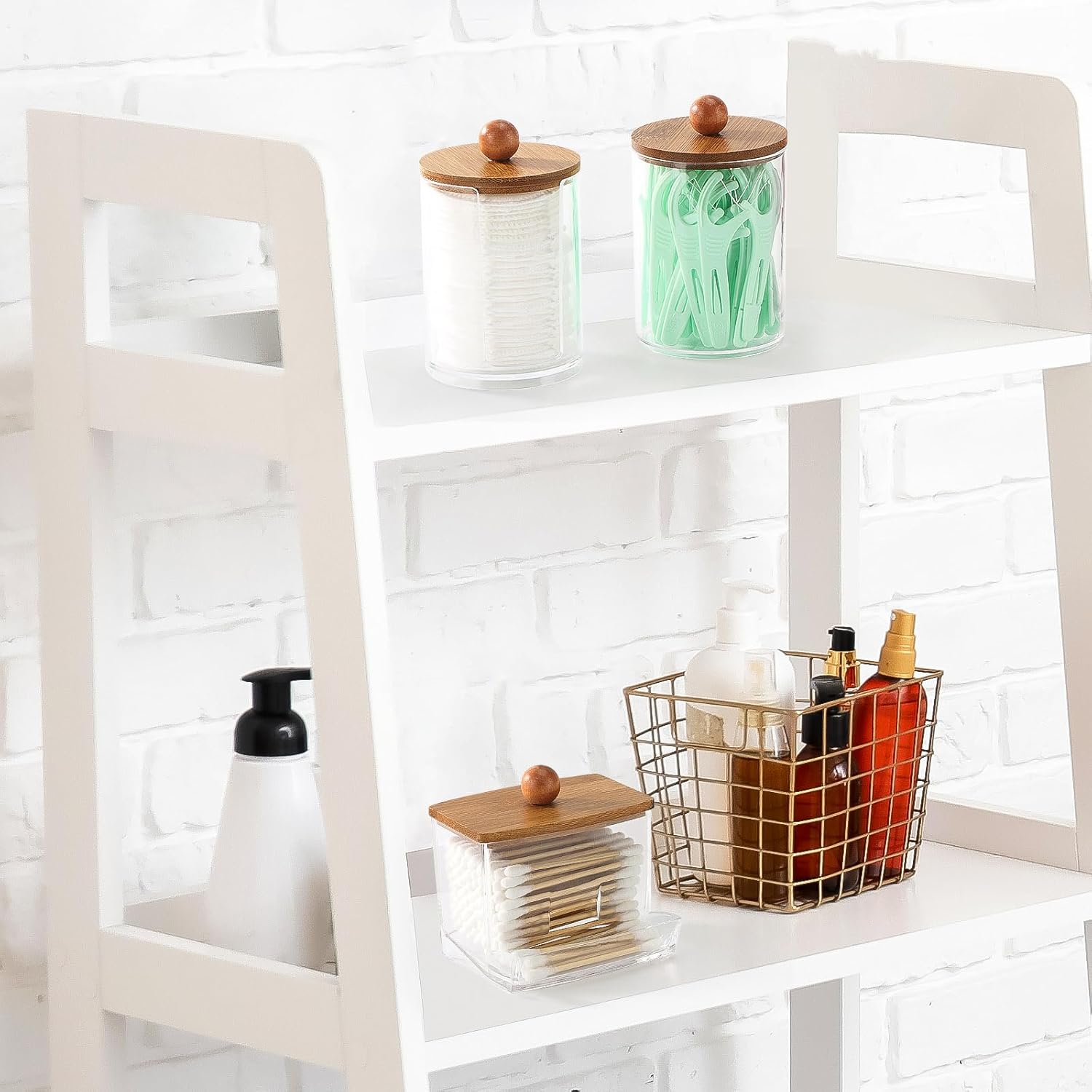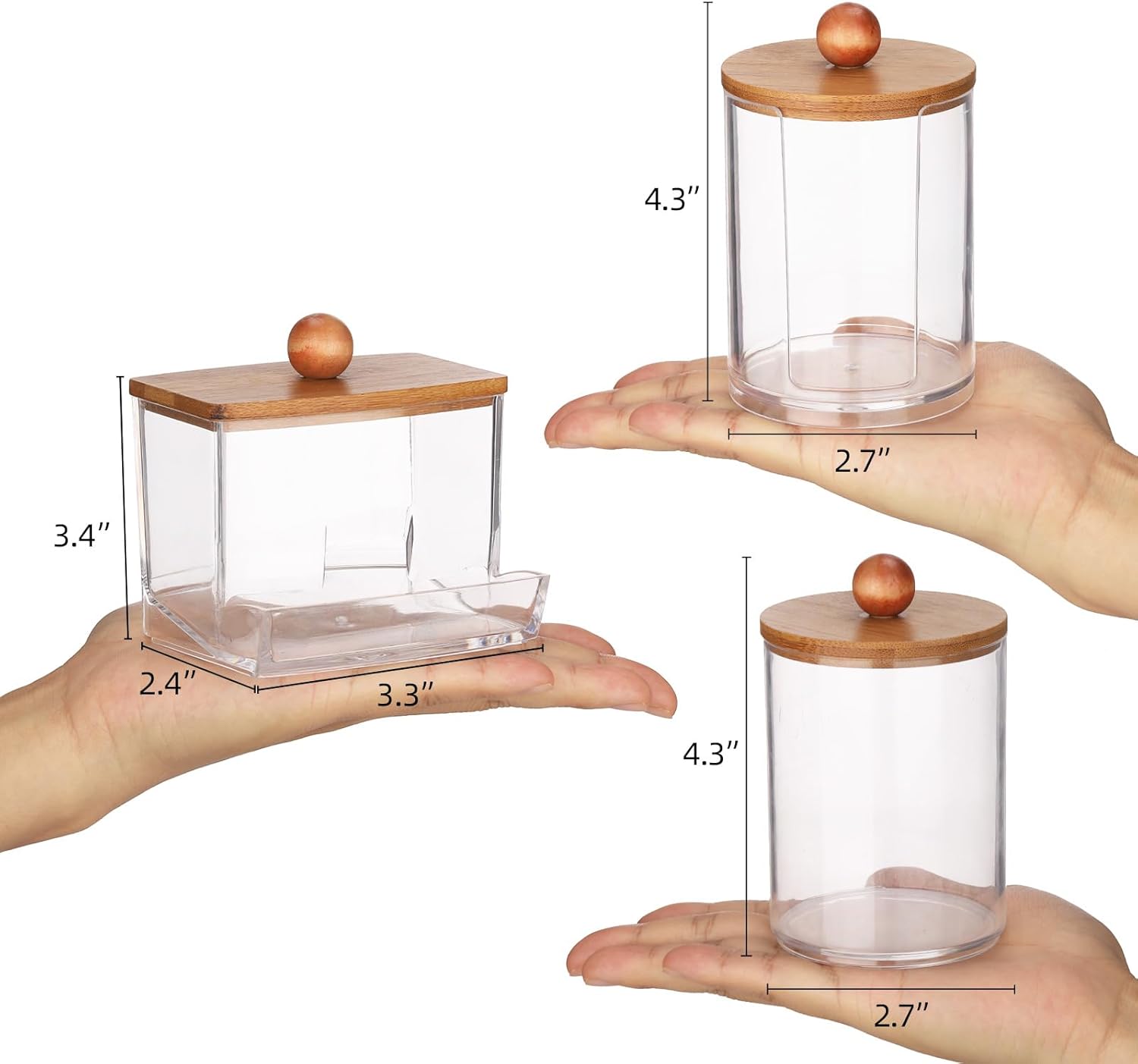 Tbestmax Bathroom Organizer Accessories Set-10 oz,7 oz Qtips Holder Storage with Bamboo Lids, Cotton Ball/Swabs Dispenser, Apothecary Jar 3 Pcs