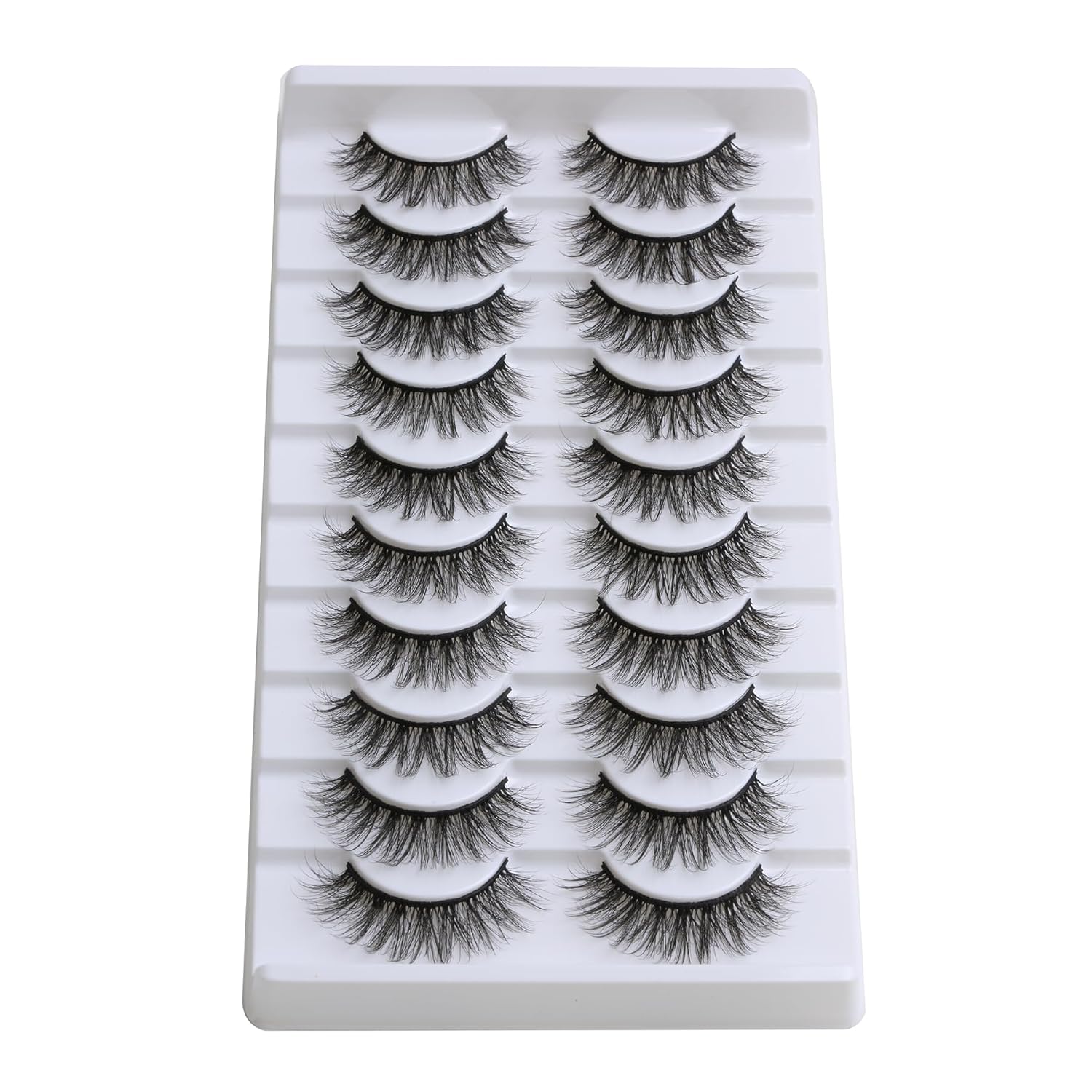 SUNWELL False Eyelashes 16mm Mink Lashes Faux Mink Lashes 8D Fluffy Strip Eye Lashes Wispy Soft Luxury Volume Fake Eyelashes 10 Pairs Pack