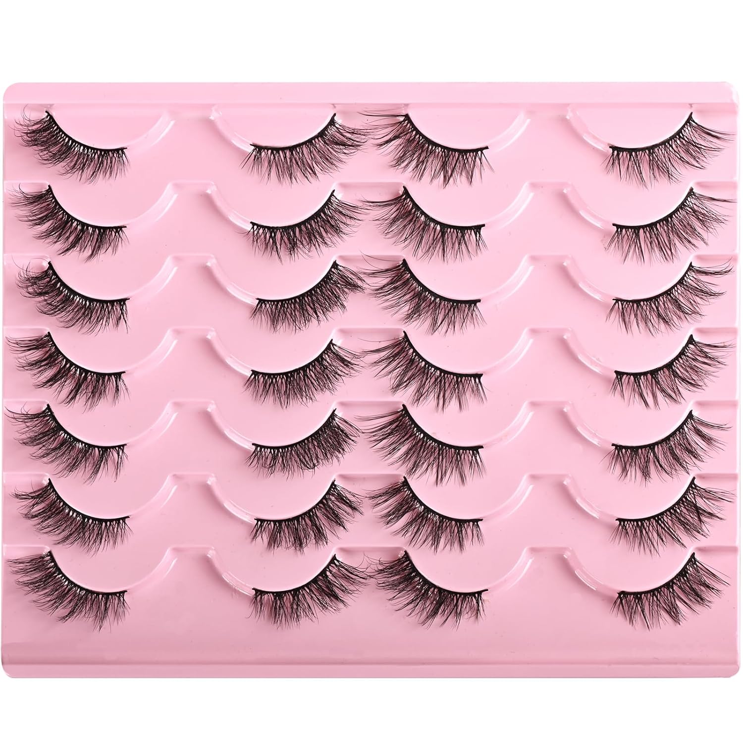 FARRED Half Lashes Natural Look Short Eyelashes Cat Eye Lash Fluffy Natural Lashes Wispy False Eyelash 14 Pairs Faux Mink Strip Eye Lashes Pack for Daily Makeup (F15 | 9-14mm)