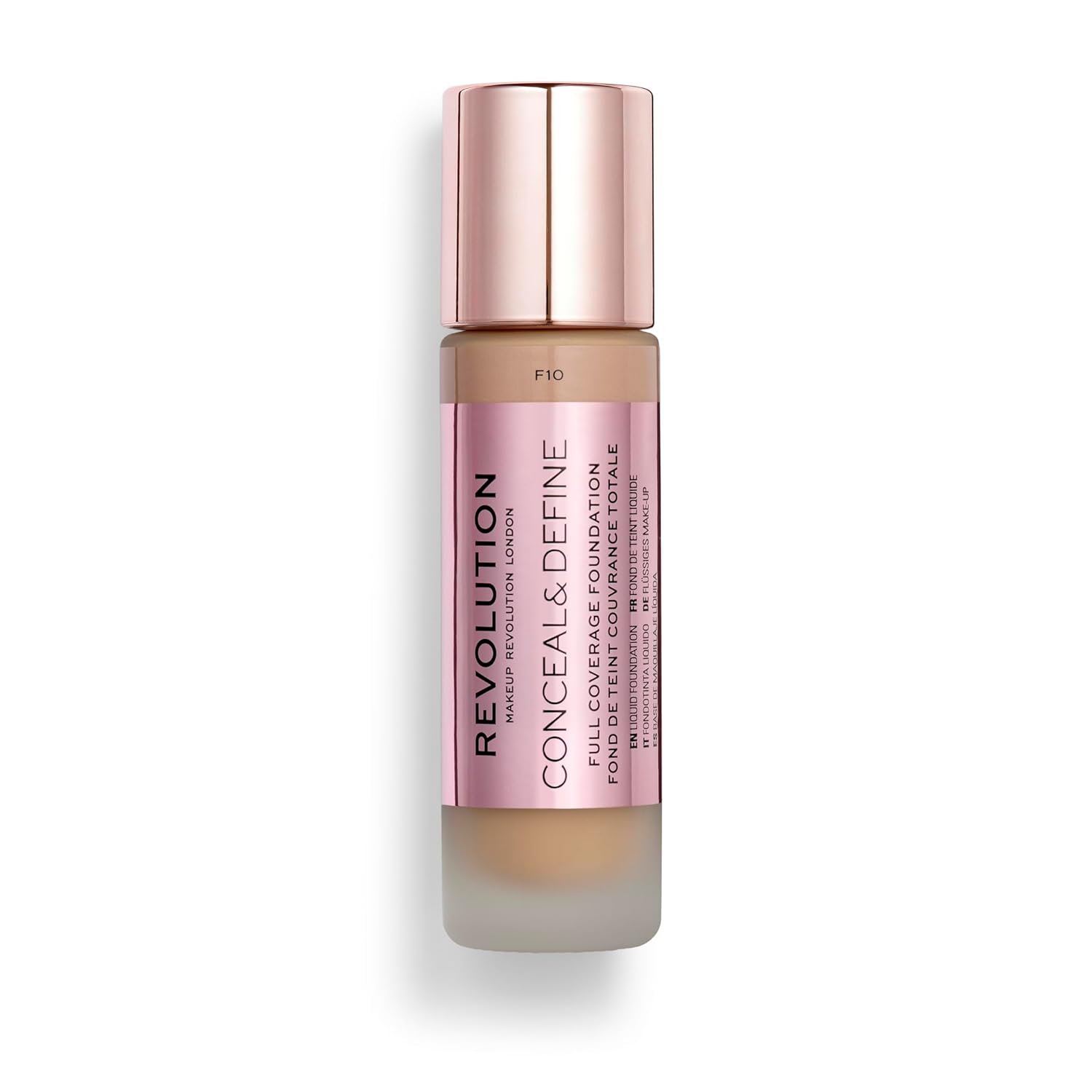 Revolution Beauty, Conceal & Define Foundation, Full Coverage, Long-Lasting Matte Finish, Vegan & Cruelty Free, F10 Medium Skin Tones, 0.8 Fl.Oz.