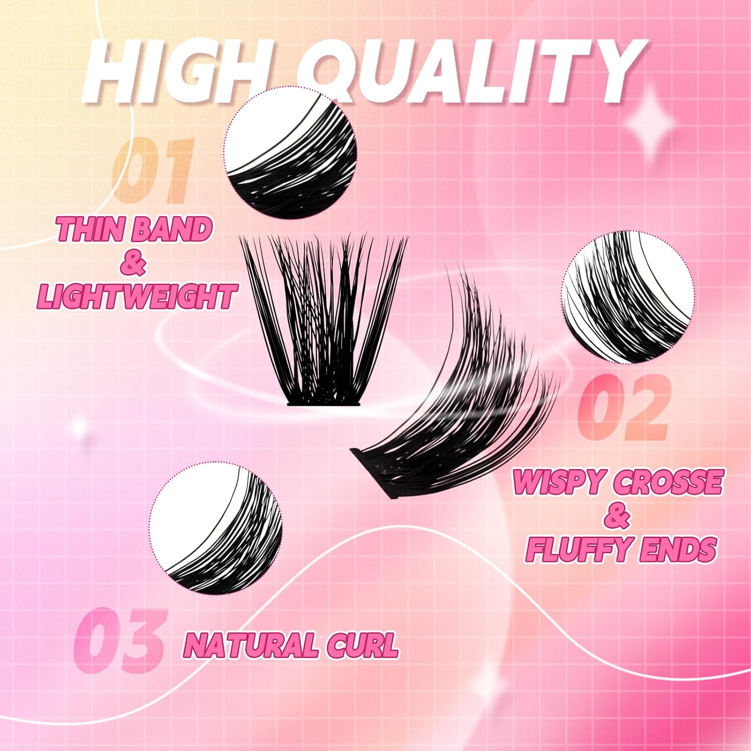 - Easy to use eyelash clusters:The lash clusters are easy to wear and will not easily fall apart. With our premium wispy cluster lashes, you can easily get a natural look or dramatic look.