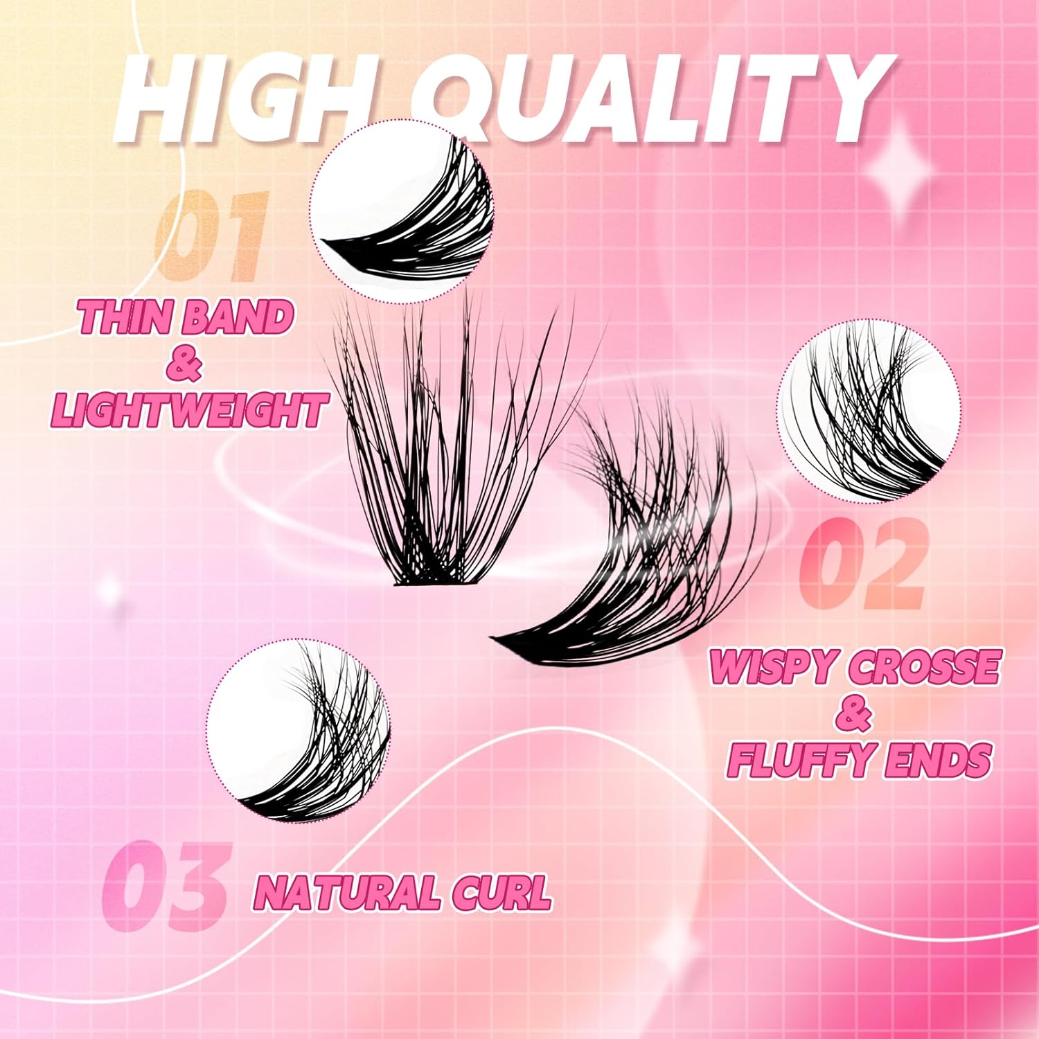 - Easy to use eyelash clusters:The lash clusters are easy to wear and will not easily fall apart. With our premium wispy cluster lashes, you can easily get a natural look or dramatic look.