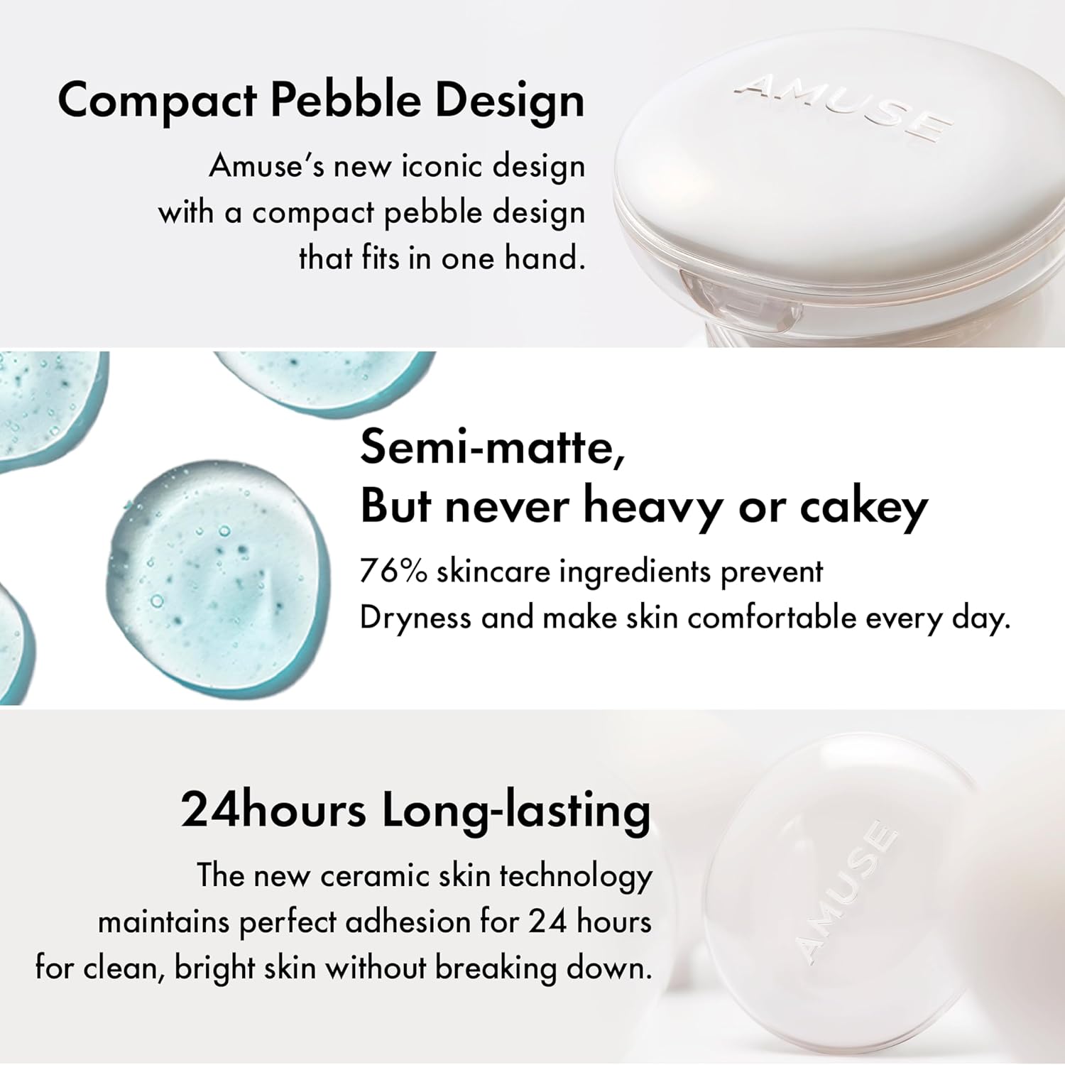 Amuse SEOUL Ceramic Skin Perfector Cushion Foundation Refill | Long-lasting, Lightweight, Semi-matte, Flawless Coverage, Hypoallergenic, Korean Beauty, Vegan(15g / 0.52 oz.) ([Refill] 1.5 NATURAL)