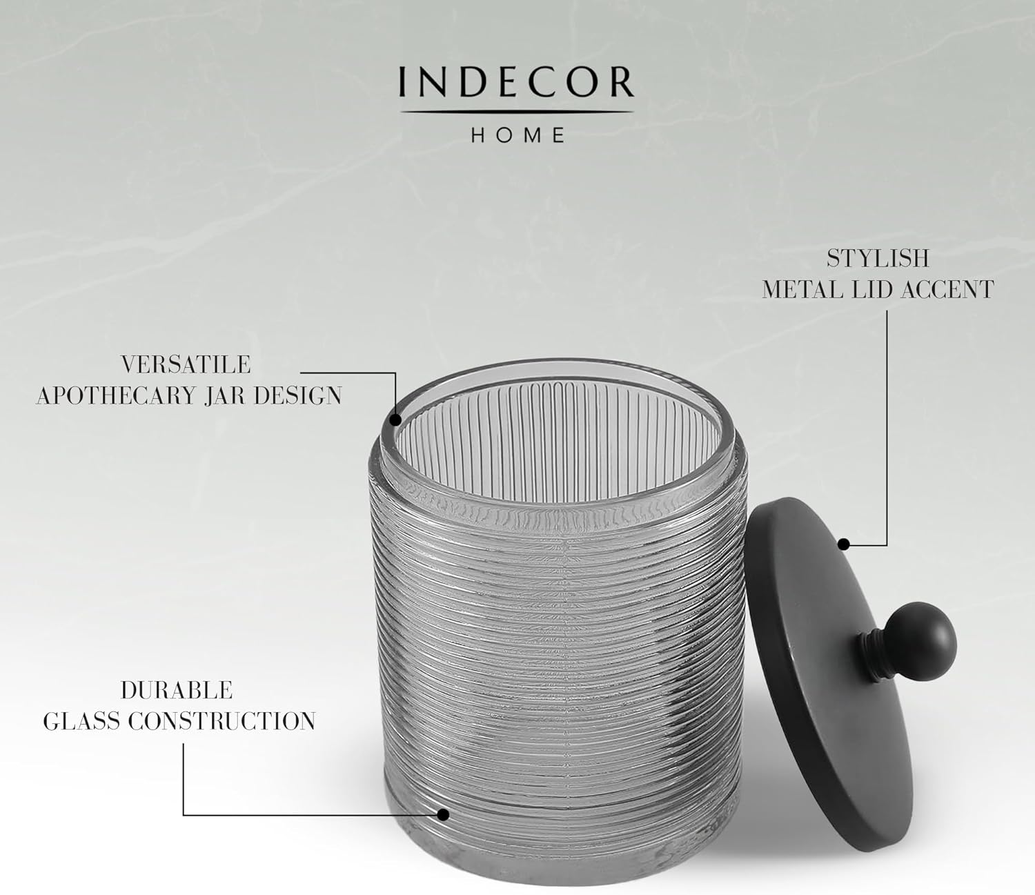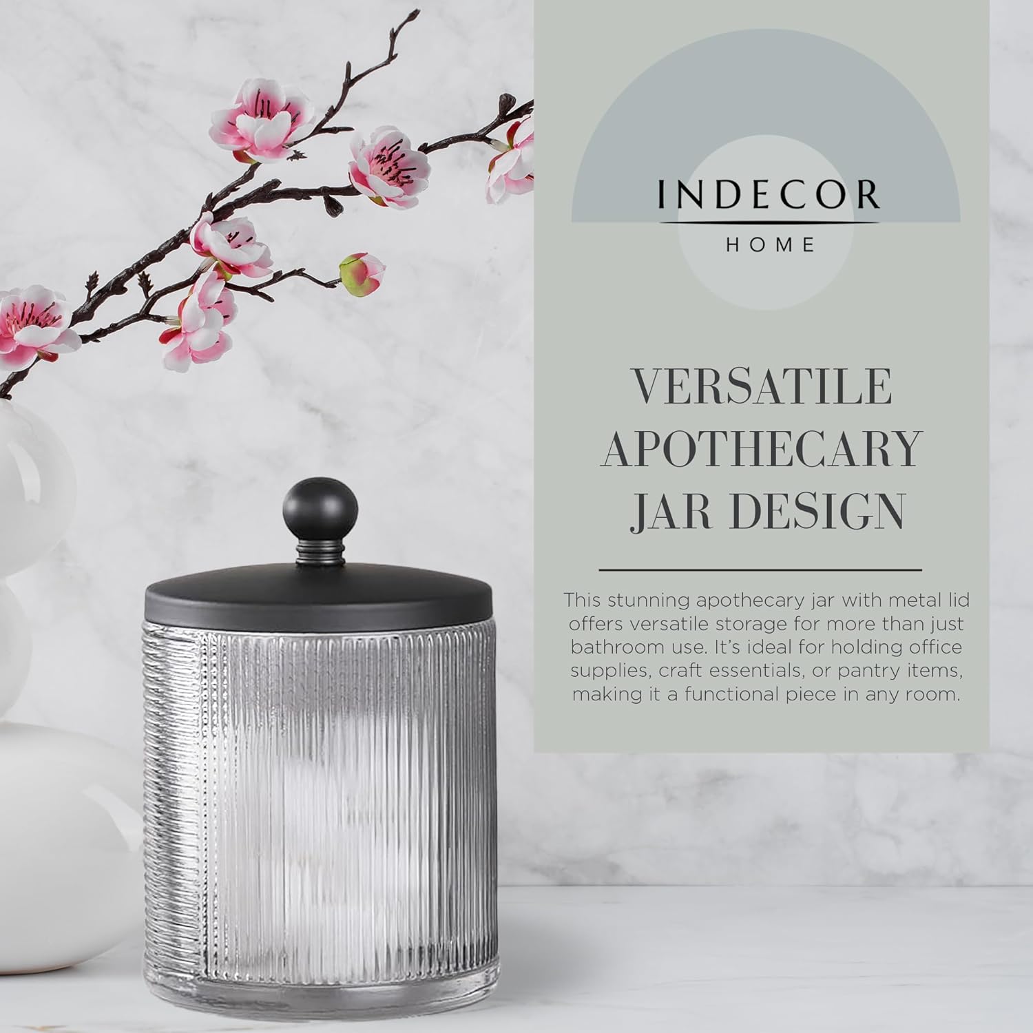 - VERSATILE APOTHECARY JAR DESIGN - This clear apothecary jar with metal lid offers versatile storage for more than just bathroom use. Itβs ideal for holding office supplies, craft essentials, or pantry items, making it a functional piece in any room.