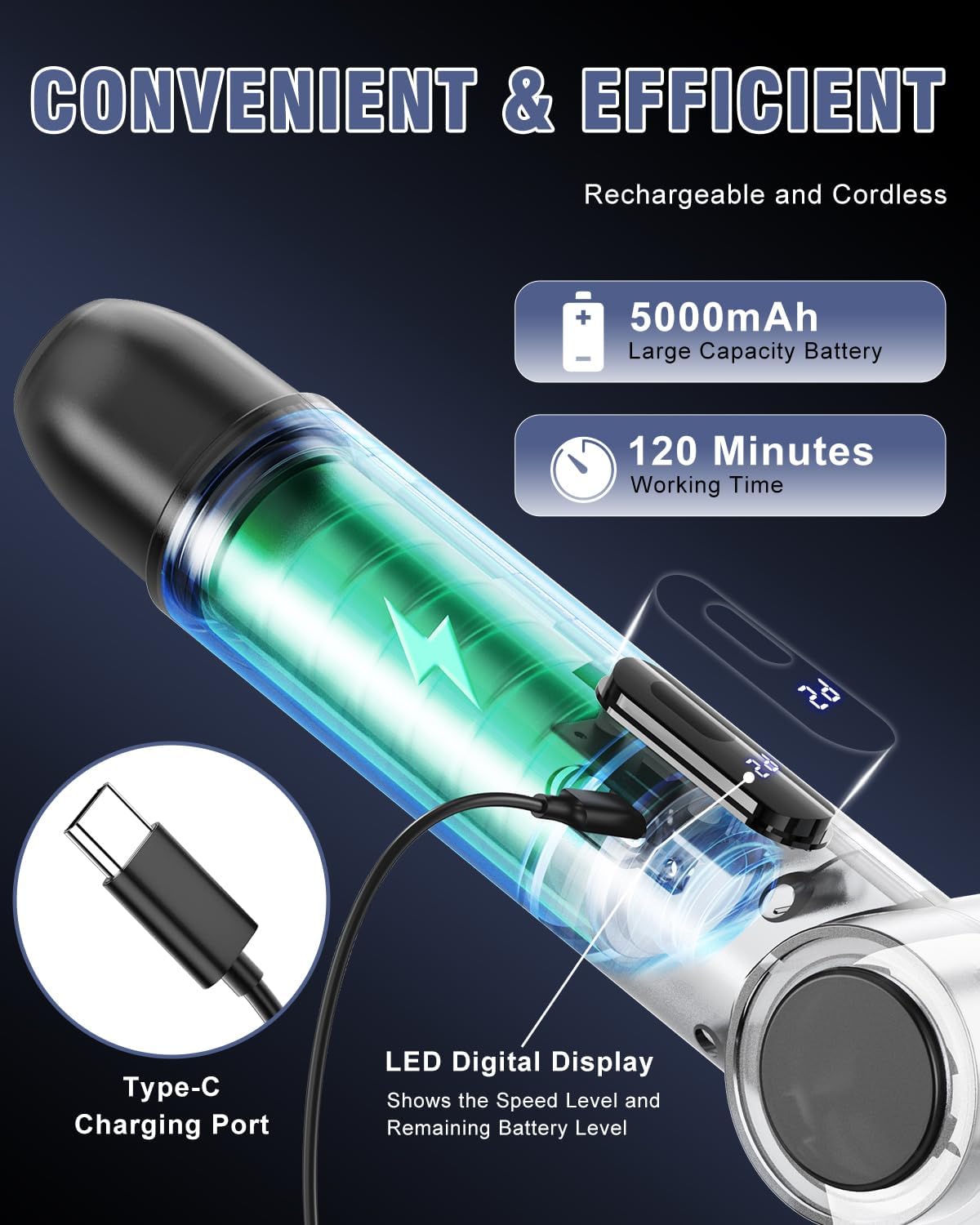 - 【CONVENIENT & EFFICIENT Rechargeable and Cordless】Homtronics Electric Scrubber is equipped with a high-definition LED digital display, which allows you to clearly see the operating speed mode and the remaining power of the work, which helps you to better control the rhythm of cleaning. It also comes with a 5000mAh high-capacity battery that supports 2 hours of long-time cleaning activities. Adopting Type-C charging port design, it is convenient and quick to achieve charging.