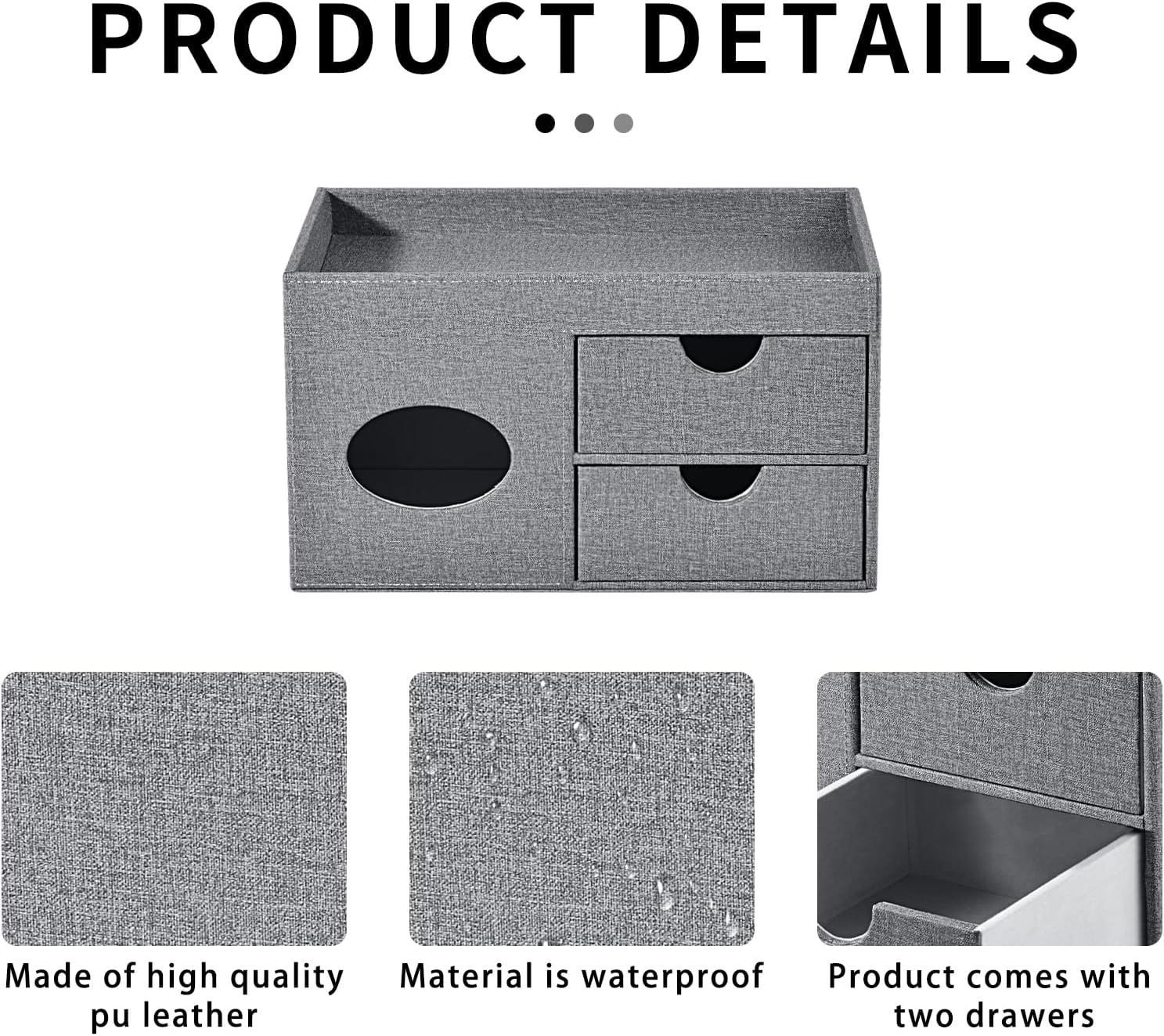 - Multifunctional tissue box lid storage box-The tissue box lid and 1 Storage Tray and 2 Mini Drawer,Very suitable for storing all remote controls ,mobile phone, glasses, or pencils/pens,cosmetics, perfumes,jewelry, Makeup brushes, lipsticks potted plants, etc., Make the desktop well-organized and neat.