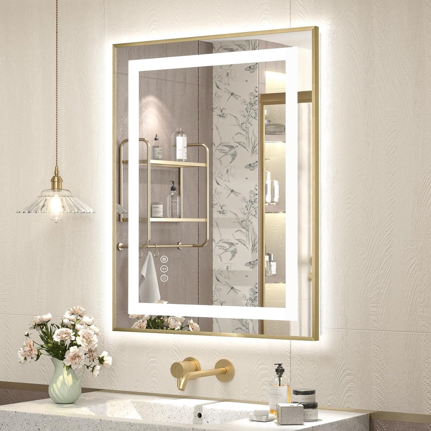 - Gold Metal Frame LED Mirror: Our LED mirror for bathroom have thin and durable gold metal frame that provides sufficient brightness and elegance look. It combines practicality and modern beauty, is a ideal for decorating bathroom, living room, bedroom, hair salon and hotel.