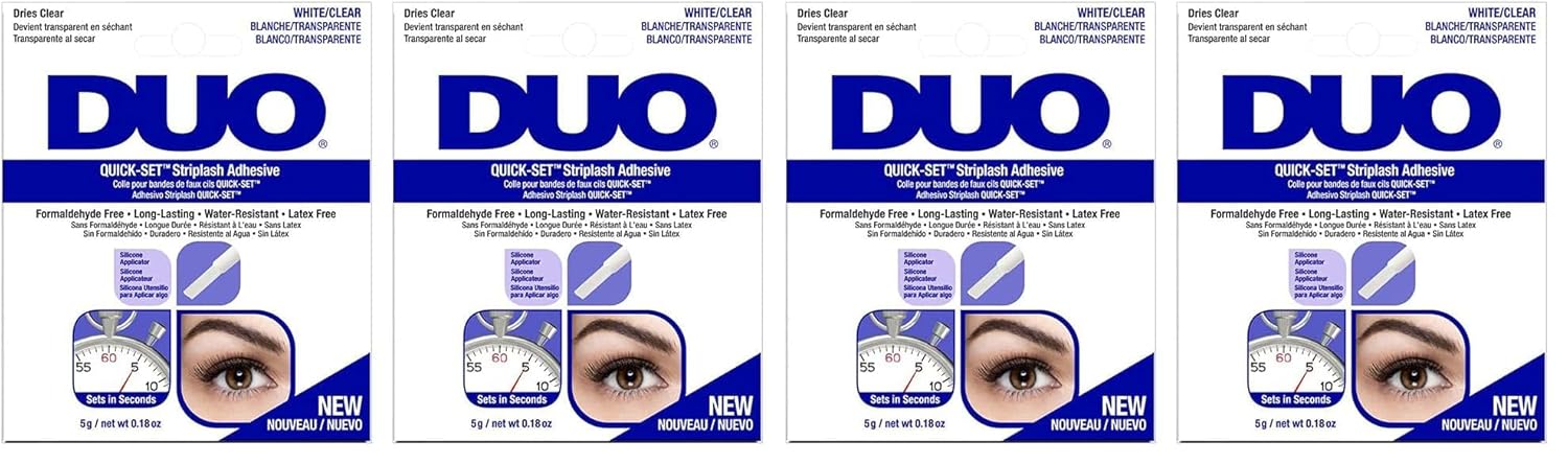 DUO Quick-Set Clear False Strip Lash Adhesive, Dries Invisible 0.18 oz x 4 Packs