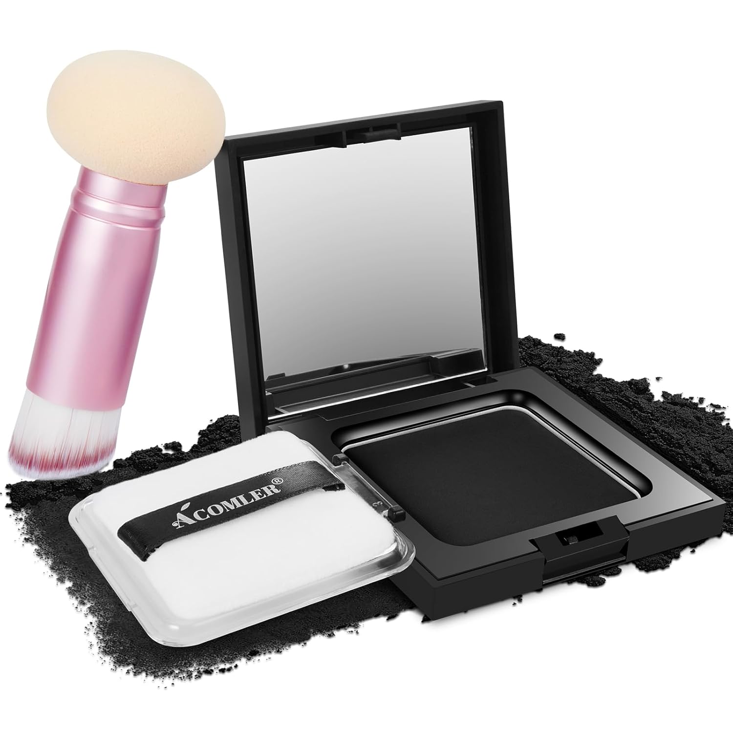 Acomler Root Touch Up Hair Color, Instant Root Cover Up, Black Hairline Powder, Gray Hair Cover Up Hair Fibers for Thinning, Hair Powder for Women Men Includes Makeup Brush (Black, 0.42oz)