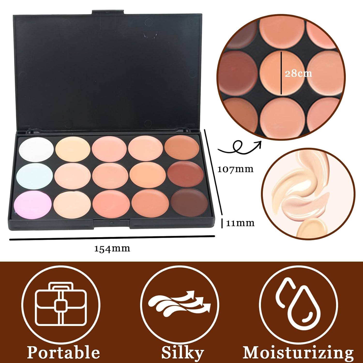 15 Color Contour Palette,Waterproof Long Lasting Facial Correcting Concealer Palettes,Cream Foundation Makeup Palettes with Brushes,Color Correcting Palettes for Women (3 Pack)