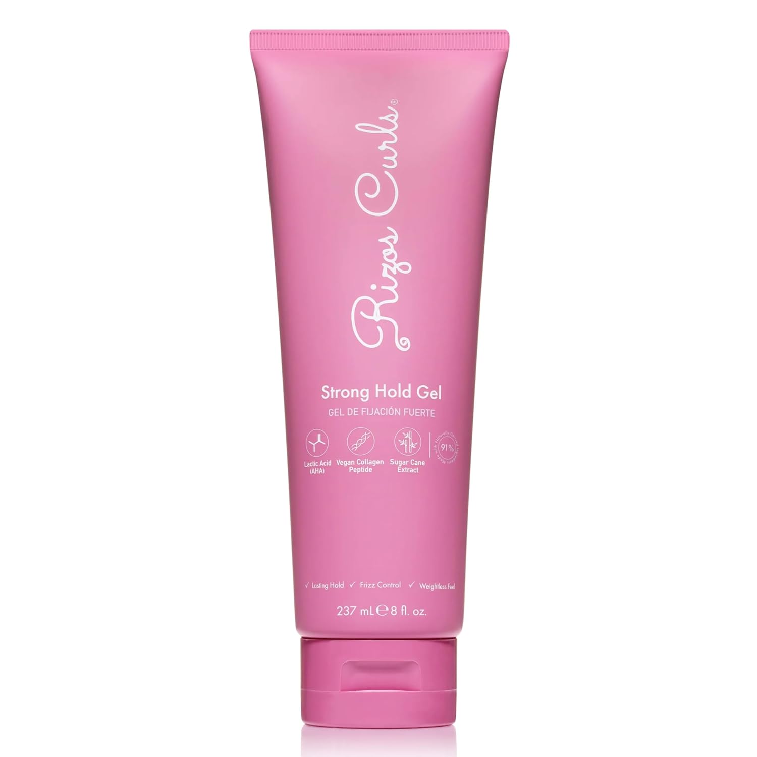Rizos Curls Strong Hold Gel - Long-Lasting, Flake-Free Gel for Curly, Coily, and Wavy Hair, Frizz Control, Curl Definition & Shine, Vegan Collagen Peptides & Sugar Cane Extract, 8oz