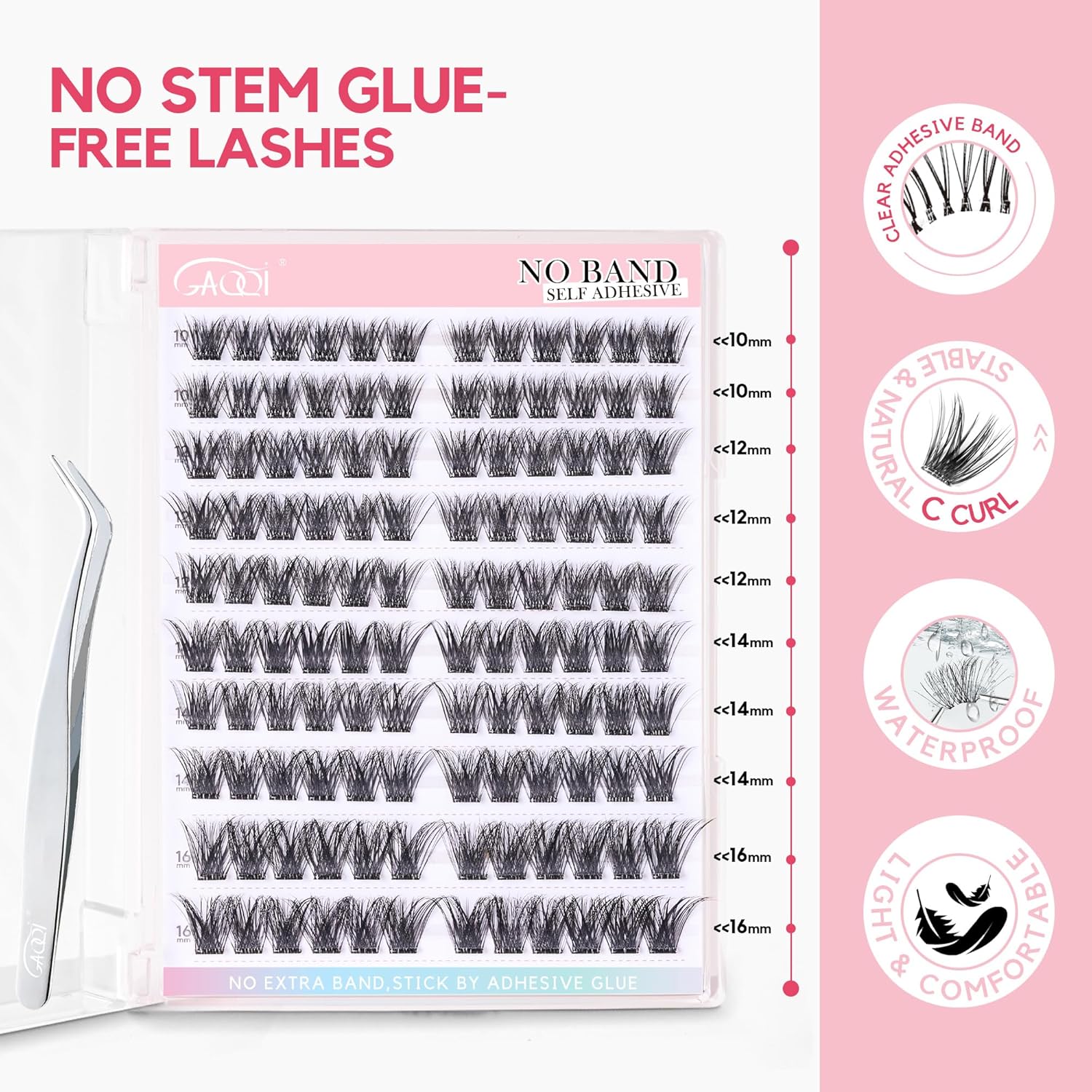 - 【No Band! New Tech】These self-adhesive lash clusters feature the latest stemless technology. Without an extra band, they adhere directly with adhesive glue, giving the appearance of clear-band.