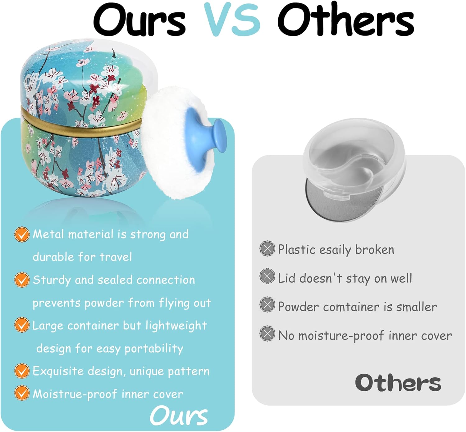 WEMEGA Body Powder Case with Powder Puff Powder Container Tea Box for Baby and Women Powder Puff and Powder Case for Travel (Spring1)