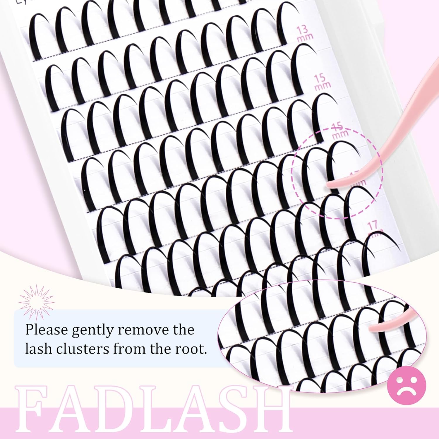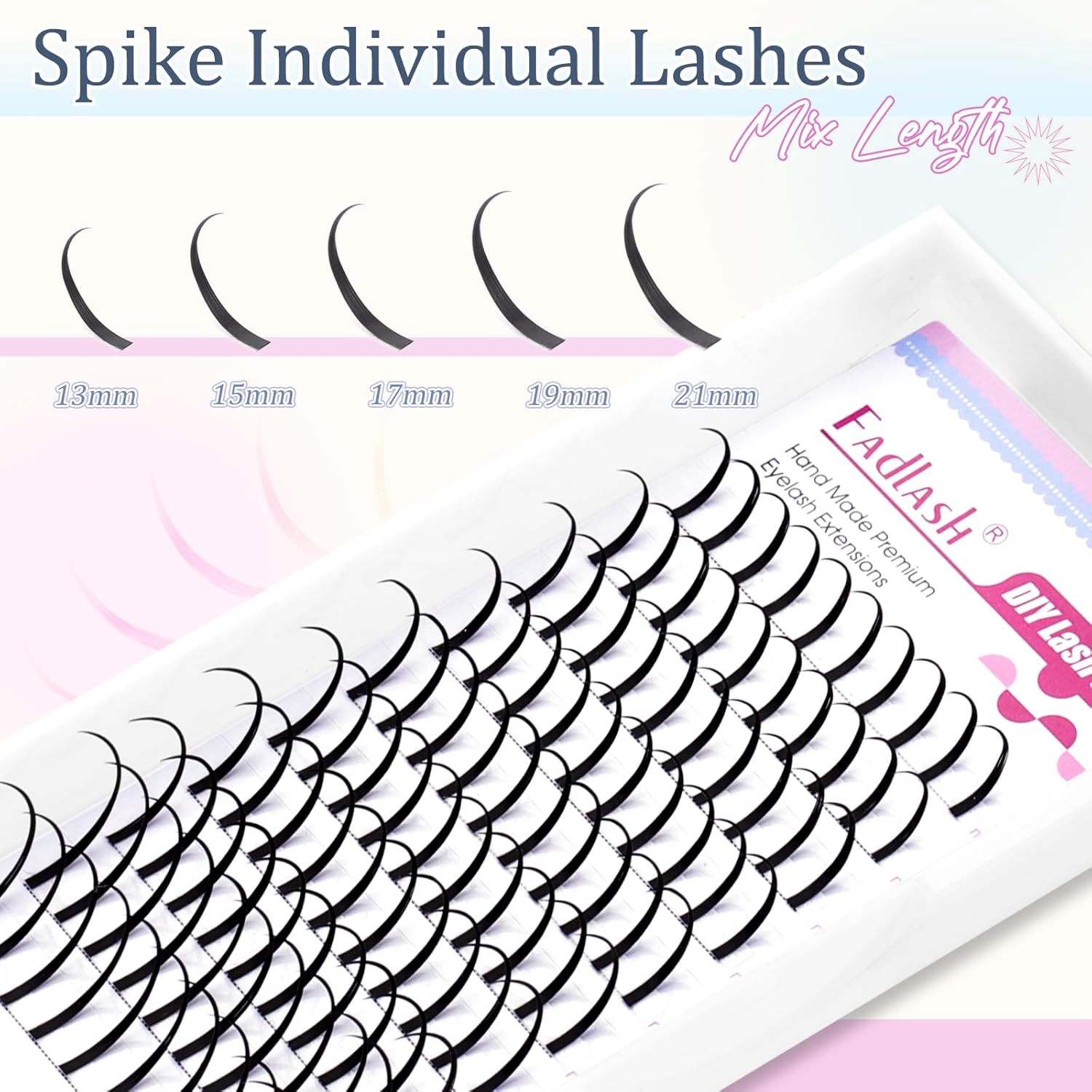 - Spiked Eyelash Clusters Extension: This lash clusters features unique spikes that can add a beautiful and distinctive effect to your eyelash Extension. Our eyelash tips instantly add highlights, making your overall eyelash look stand out. Each disc has 10 rows, with 10 spike lash clusters in each row. You can choose from different lengths ranging from 13 to 21 millimeters. It is suitable for various scenarios such as daily life, dates, and photography.