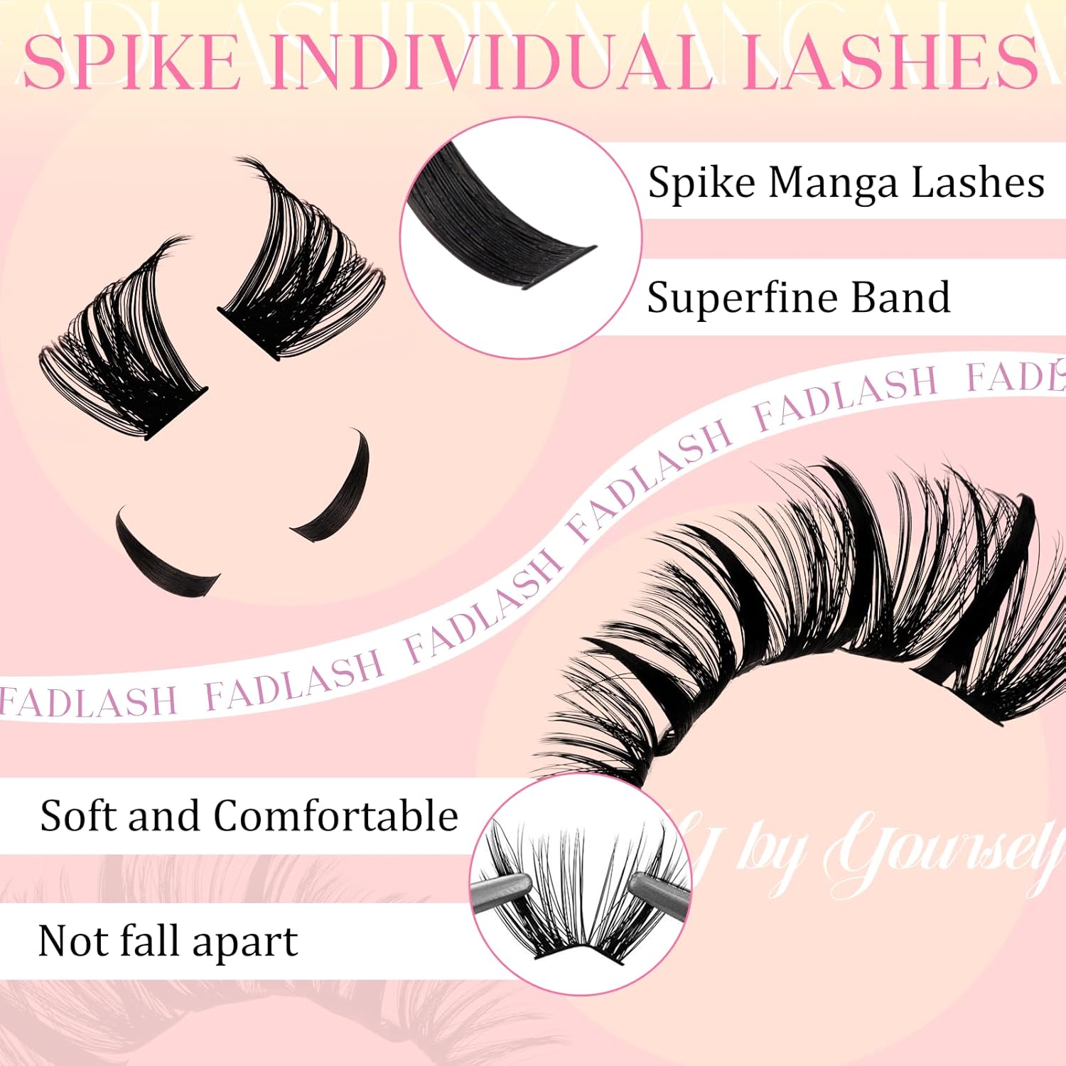- Lash Clusters and Spikes EyeLash Extension: Spiked fairy cluster false eyelashes add a sensual effect to thick eyelashes. If you want to extend your eyelashes, the latest combination of D-curly individual Lashes clusters and lash clusters with spikes will be your ideal choice! Be the master of your own eyelashes!
