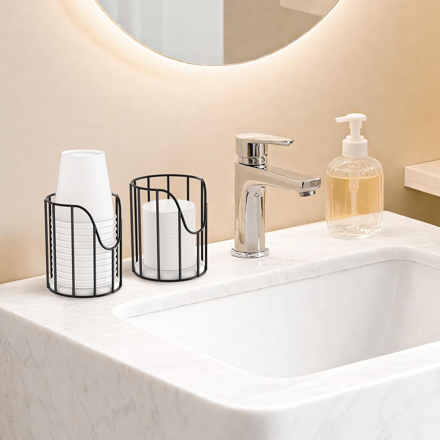 Luxspire Bathroom Cup Dispenser, 3-5oz Dixie Cup Dispenser, Metal Dixie Cup Holder, Disposable Paper Cup Holder for Bathroom, Cotton Pad Holder, Guest Bathroom Essentials, Black, 2 Pack
