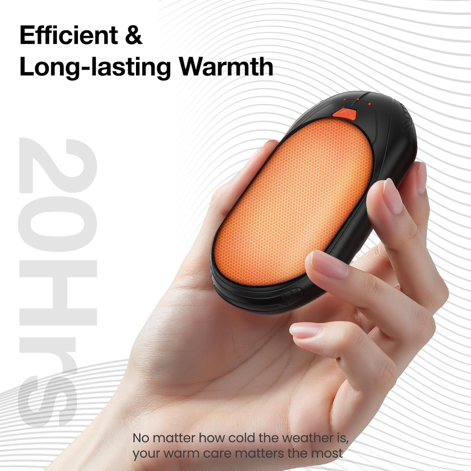 - 2-in-1 Rechargeable Hand Warmer: Experience ultimate versatility with our 2-in-1 electric hand warmers — two units that connect together to form a compact, palm-sized heater, delivering 360° all-around warmth. Use separately to warm both hands or share with a loved one. Perfectly portable and designed for on-the-go use — ideal for travel, hiking, camping, skiing, golfing, hunting, and more.