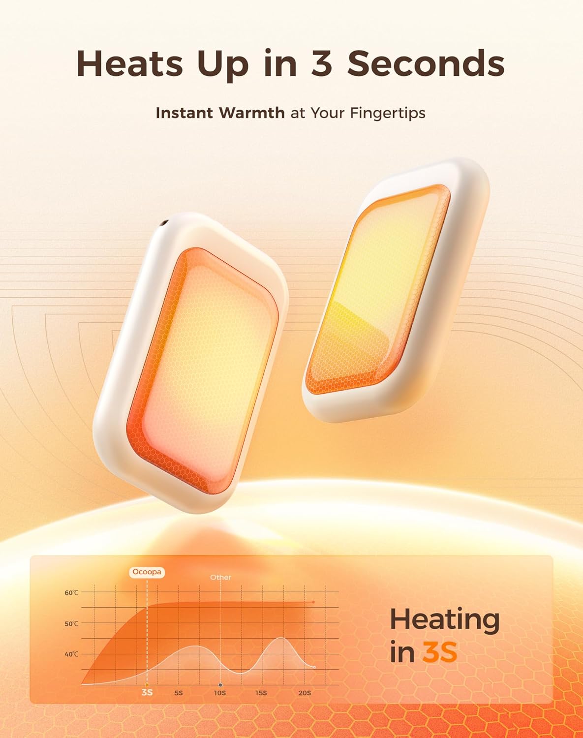 - Ultra-Thin and Portable: The Ocoopa UT4 Young hand warmer is your perfect on-the-go companion, measuring just 0.6 inches thick and 30% lighter than similar models; It easily fits into gloves, pockets, and wallets, allowing you to enjoy warmth anytime, anywhere; Just snap it on and experience the convenience of the magnetic 2-in-1 design