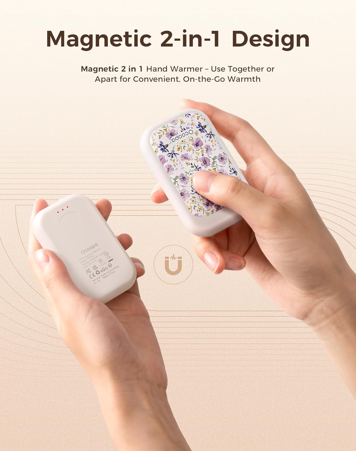 - Ultra-Thin and Portable: The Ocoopa UT4 Young hand warmer is your perfect on-the-go companion, measuring just 0.6 inches thick and 30% lighter than similar models; It easily fits into gloves, pockets, and wallets, allowing you to enjoy warmth anytime, anywhere; Just snap it on and experience the convenience of the magnetic 2-in-1 design