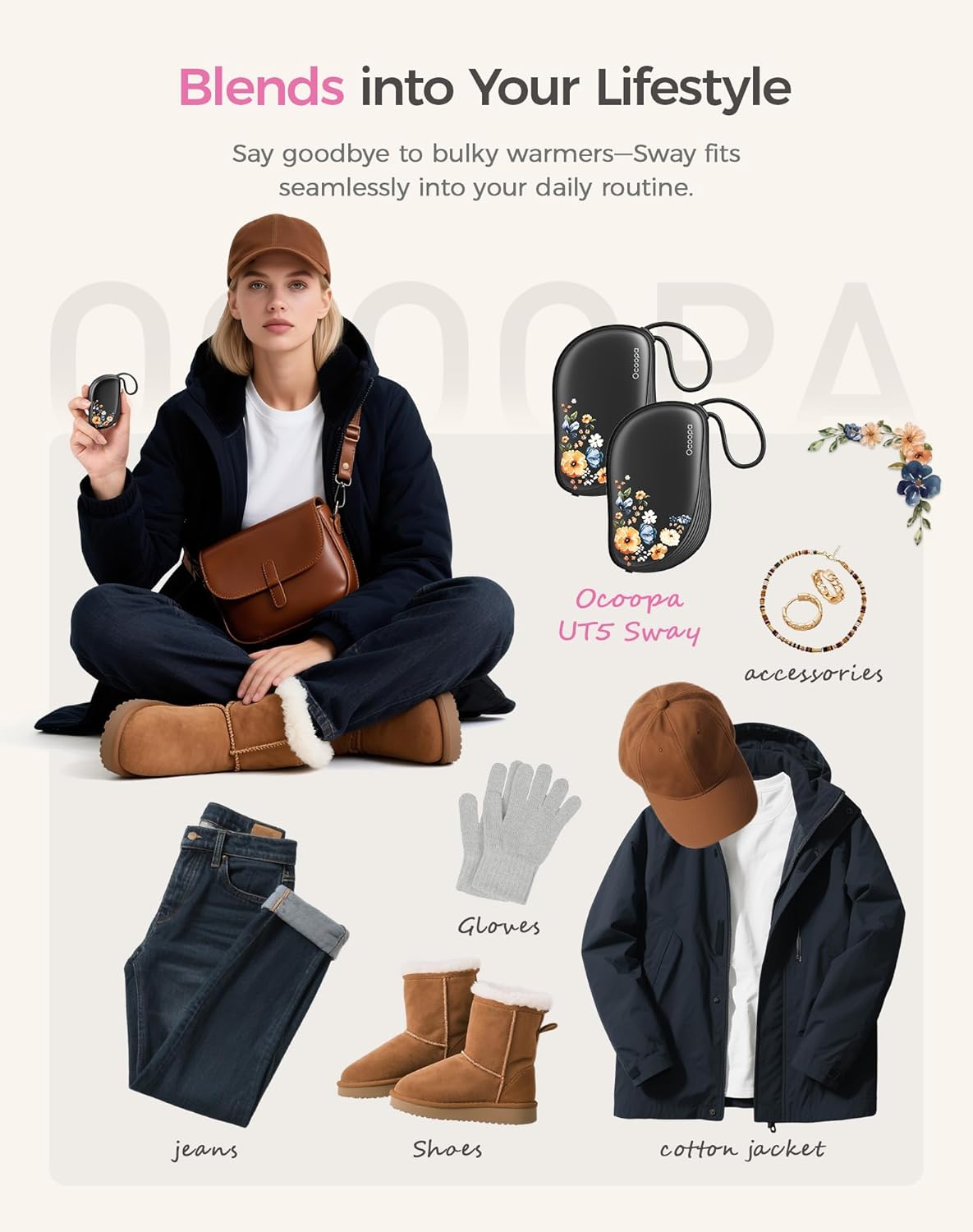 - Inspired by the Comb, Built for Warmth: Inspired by the graceful curves of a royal comb, the UT5 Sway hand warmers blend timeless design with modern heating technology. Heats up in just 3 seconds and delivers steady, single-sided warmth for up to 6 hours with three heat levels. No more bulky or disposable warmersâjust compact comfort that goes where you go.