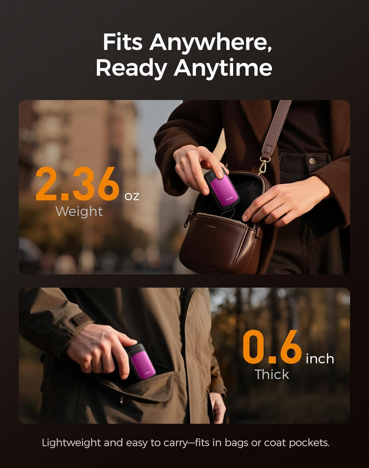 - Two-Pack, Pocket-Friendly Design β Lightweight than a lighter, UT5 Duoheat portable hand warmer weighs just 2.36 oz and 0.6 inches thick, can slips easily into gloves, pockets, or bags. Ideal gift for Christmas, Valentine's Day, or winter birthdays.