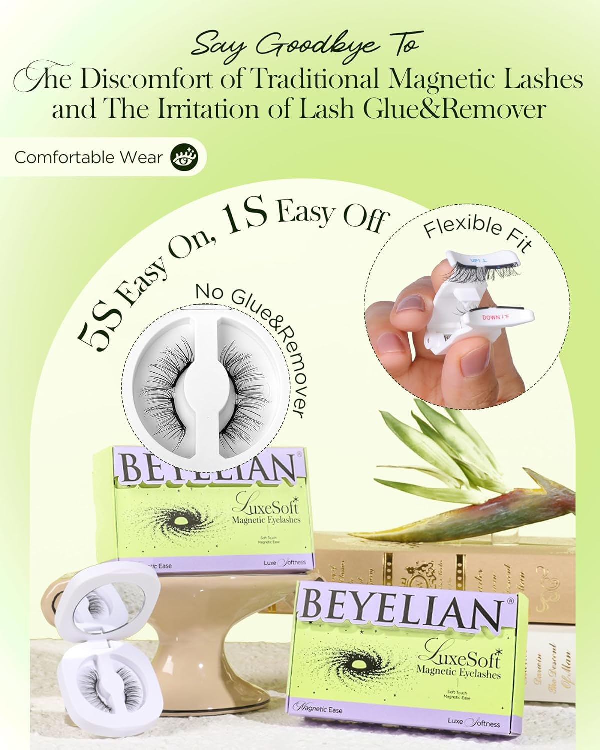 - Soft Magnetic for Ultimate Comfort - Crafted with ultra-soft magnetic strips, BEYELIAN magnetic eyelashes gently conform to your lash line, providing a lightweight, barely-there feel. The flexible band ensures a snug fit, enhancing your natural look without pinching or discomfort