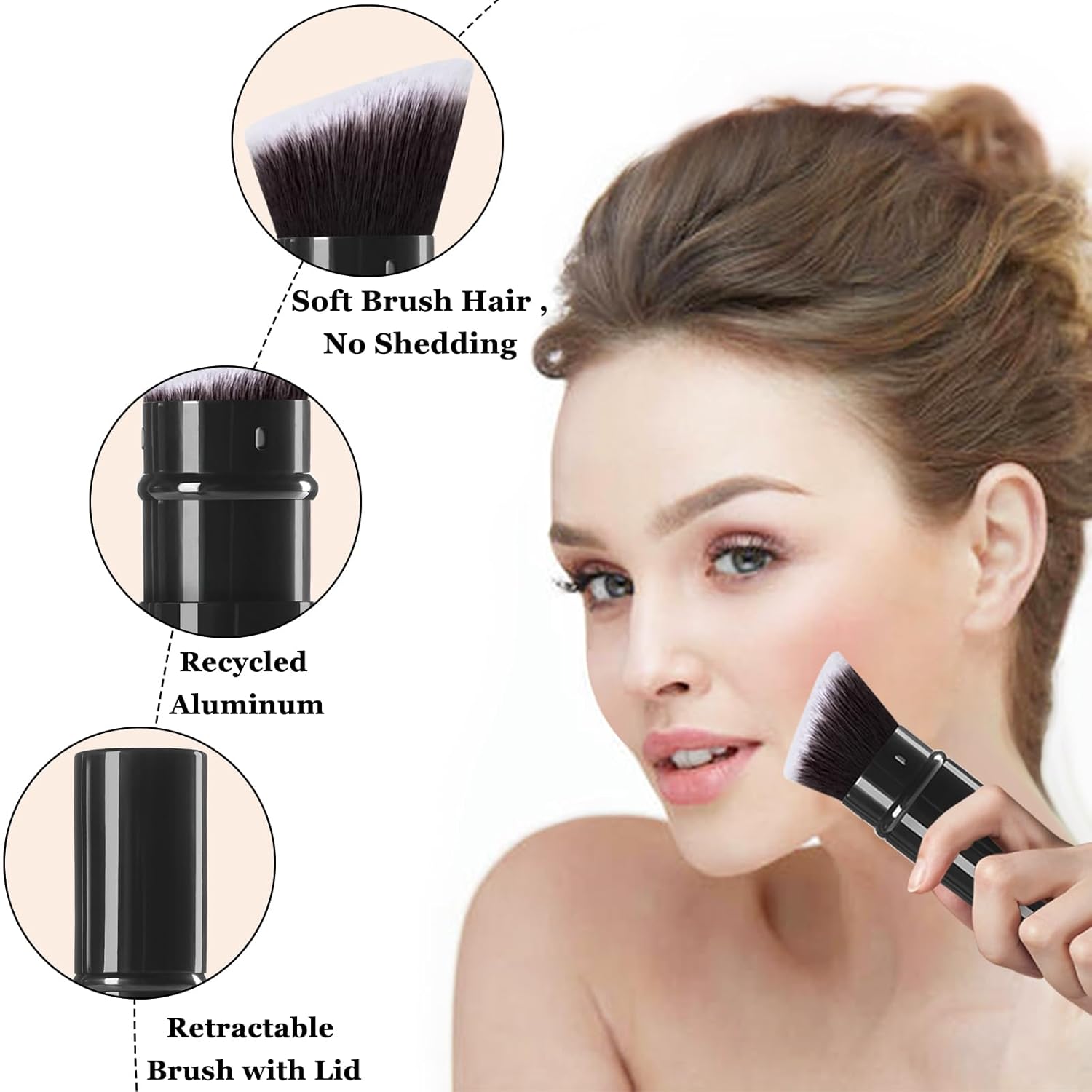 Kabuki Makeup Brush, Retractable Angle Travel Powder Foundation Makeup Brush Face Blush Brushes for Blending Liquid, Bronzer, Buffing, Sunscreen,Flawless Cosmetics