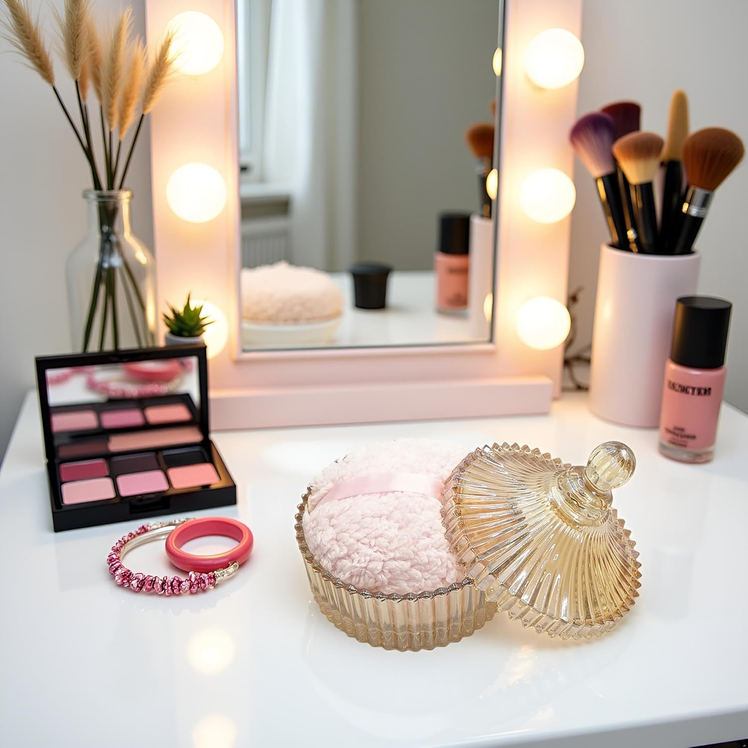 - 【Durable & Easy to Clean】 This glass powder puff container is made of high quality glass material, beautiful and durable. This product is not a sealed jar, which is easy to clean and take care of daily, it doesn't take up too much space, but can store your daily trinkets and keep your items organized
