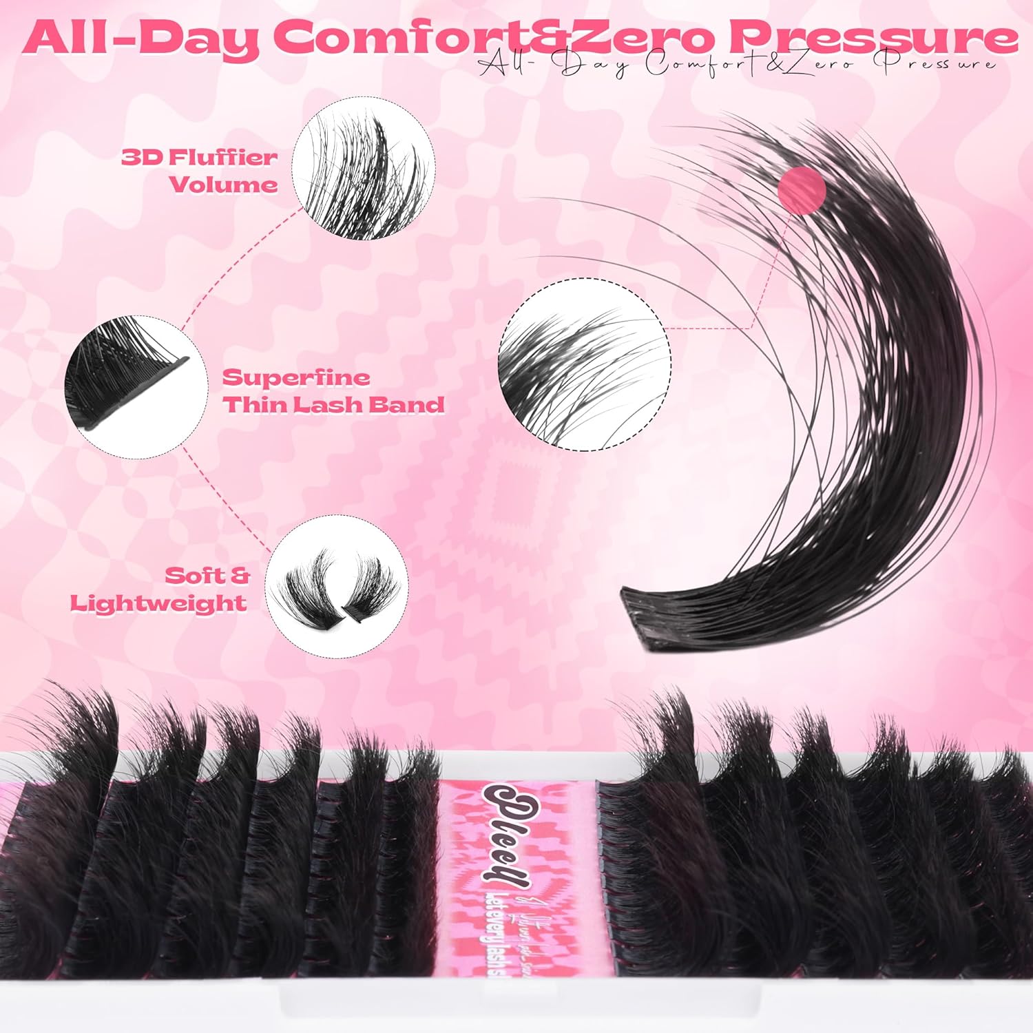 - Professional-Grade D Curl Eyelash Clusters: Fluffy lashes clusters feature temperature-control curl-lock technology, compared with other lashes that can keep perfect D curl even like walking in the rain. No matter rain or shine, the strikingly curled individual lashes will make your eyes radiate captivating charm.